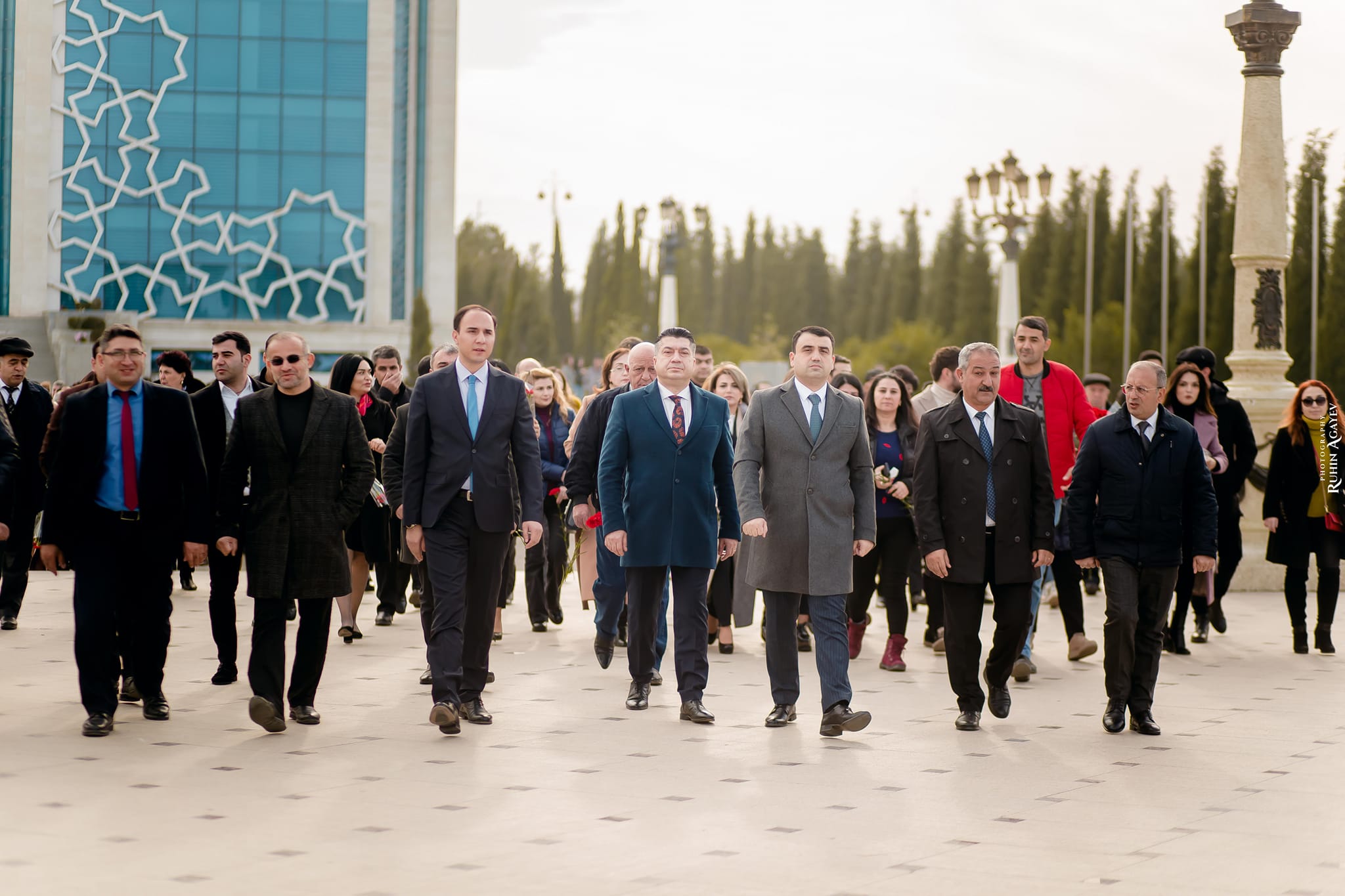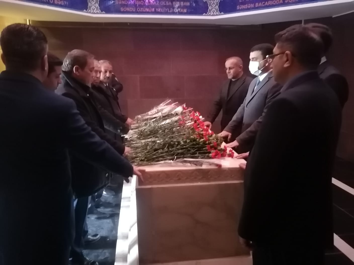Nizami Gəncəvi Məqbərəsinin önündə Gəncə Dövlət Dram Teatrının aktyoru, Xalq artisti Alim Məmmədov Nizami Gəncəvinin obrazında qonaqları salamladı.