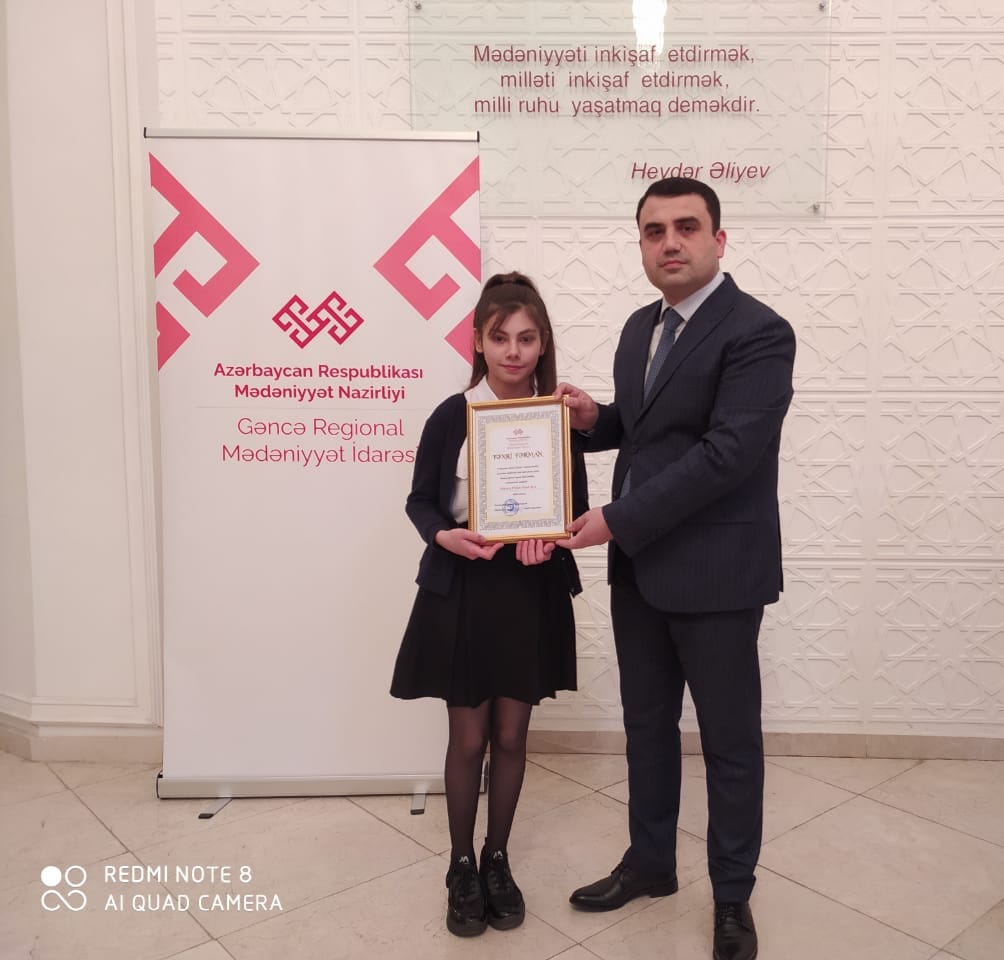 19 noyabr 2021-ci il tarixində Gəncə Regional Mədəniyyət İdarəsinin rəisi Vasif Cənnətov, Gəncə şəhər Uşaq Rəssamlıq Məktəbinin 8 Noyabr Zəfər bayramına həsr olunmuş rəsm sərgisində, fərqlənən müəllim və şagirdlərdən bir qrupuna Fəxri Fərmanları təqdim etmişdir.