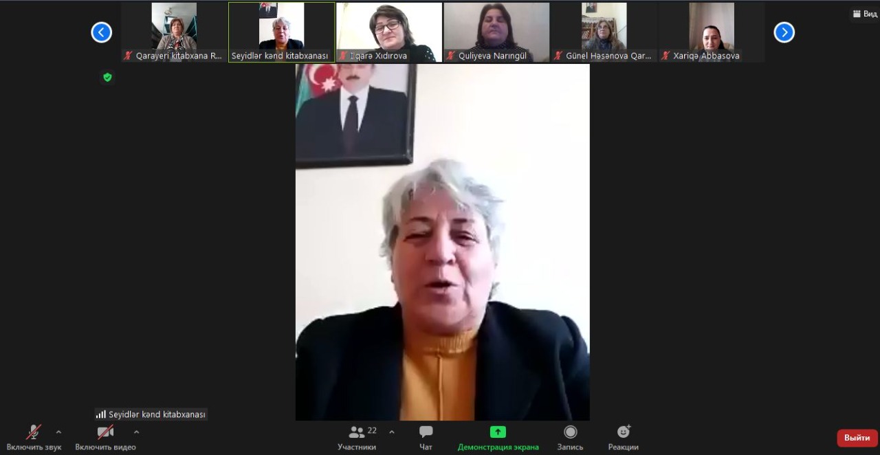 Gəncə Regional Mədəniyyət İdarəsi Samux rayon Mərkəzləşdirilmiş Kitabxana Sisteminin Qarayeri qəsəbə kitabxana filialı və Ağcəbədi Regional Mədəniyyət İdarəsi Laçın rayon Mərkəzləşdirilmiş Kitabxana Sisteminin birgə təşkilatçılığı ilə Laçın rayonunun 28 illik işğalından azad olunması münasibəti ilə “ Laçın azadlığn mübarək ” adlı onlayn yoldaşlıq görüşü keçirildi. Tədbirə başlamazdan öncə Qarabağımızın azadlığı və Azərbaycanın ərazi bütövlüyü uğrunda canından keçən şəhidlərimizin əziz xatirəsi bir dəqiqəlik sükutla yad edildi . Tədbiri giriş sözü ilə açan Samux rayon Qarayeri qəsəbə kitabxana filial müdiri Samirə Məmmədova çıxışında Laçın rayonunun işğaldan azad olunmasından. Döyüş meydanında əldə etdilən tarixi Qələbə düşməni təslim olmağa məcbur olunmasında .1-dekabrda Azərbaycan Respublikasının Prezidenti cənab İlham Əliyev 2020 ci ilin 1 dekabrnda xalqa müraciyyətində Laçın rayonu yağı düşmən tapdağından xilas edildiyini bəyan etməsindən danışdı.Samux rayon MKS-nin direktor əvəzi Telli Nəsibova çıxış edərək Laçın rayon MKS-nin kollketivini başda Ofelya Şükürova olmaqla Laçın rayonunun işğaldan azad olunması münasibəti ilə təbrik etdi və gələcək işlərində müvəfəqiyyətlər arzu etdi.Laçın rayon MKS-nin direktoru Ofelya Şükürova öz çıxışında Laçın MKSnin kitabxanaları haqda və kitabxana fondu haqda tədbir iştirakçılarına geniş məlumat verdi. Laçın MKS- nin direktor muavini Rüstəmova Rəna, Xidmət şöbəsinin müdiri Xıdırova İlqarə , İnformasiya və Resurs şöbəsinin müdir Quliyeva Narıngül,Oxu zalının müdiri Şahsuvarova Vəsilə, Komplektləşmə və kitab işləmə şöbəsinin işçisi Cabbarova Elmira, Laçın rayon Suarası kənd kitabxana filial müdiri İsmayılova Səbinə hər biri öz çıxışlarında Laçın rayonunun erməni vandalları tərəfindən dağıdılmış tarixi abidələr haqda , yaşayış evləri, məktəblərin dağıdılmasından geniş danışıldı. Tezliklə Laçına dönmələrini və orda yeni kitabxanalarda fəaliyyətlərini davam etmələrini səbirsizliklə gözlədiklərini dilə gətirdilər. Samux rayon MKS-nindən Gəncə Regional Mədəniyyət İdarəsinin Samux rayon üzrə baş məsləhətçi Süleyman Əliyev, Metodika və biblioqrafiya şəbəsindən böyük metodist Tərifə Verdiyeva,Xidmət şöbəsinin müdiri Vüsalə Əliyeva , Seyidlər kənd kitabxana filial müdiri Xatirə Məmmədova, Laçın rayon MKS-nin kollektivini Laçının azad olunması münasibəti ilə təbrik etdilər və Laçın rayonunda böyük tədbirlərdə görüşmlərini arzu etdilər