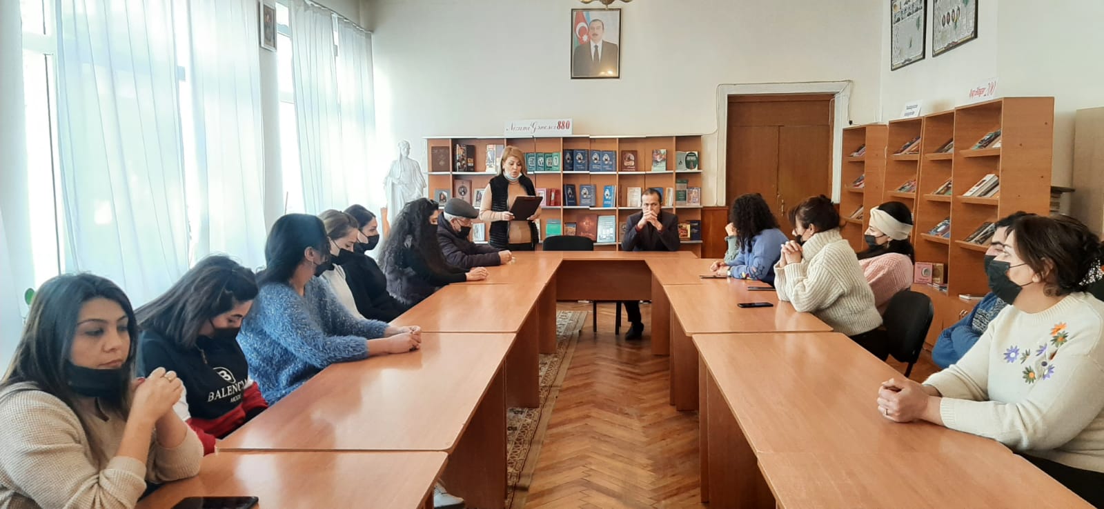 Tədbiri açan oxu zalının müdiri Aidə Abdullayeva tədbir iştirakçılarını salamladıqdan sonra prezident İlham Əliyevin həyatı ilə bağlı məlumatla iştirakçıları tanış etdi.