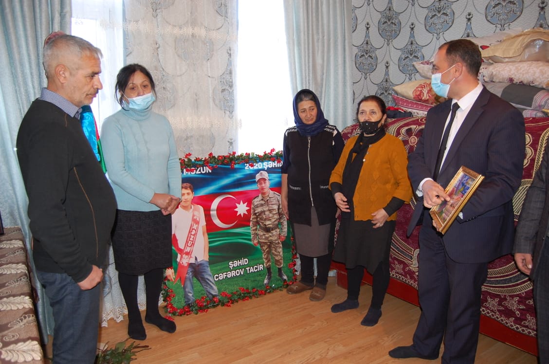 Sonda Şəhid Tacir Cəfərovun ailəsinə Şəhidimizin şəkli əks olunmuş xatirə foto-tablosu təqdim edilmişdir.