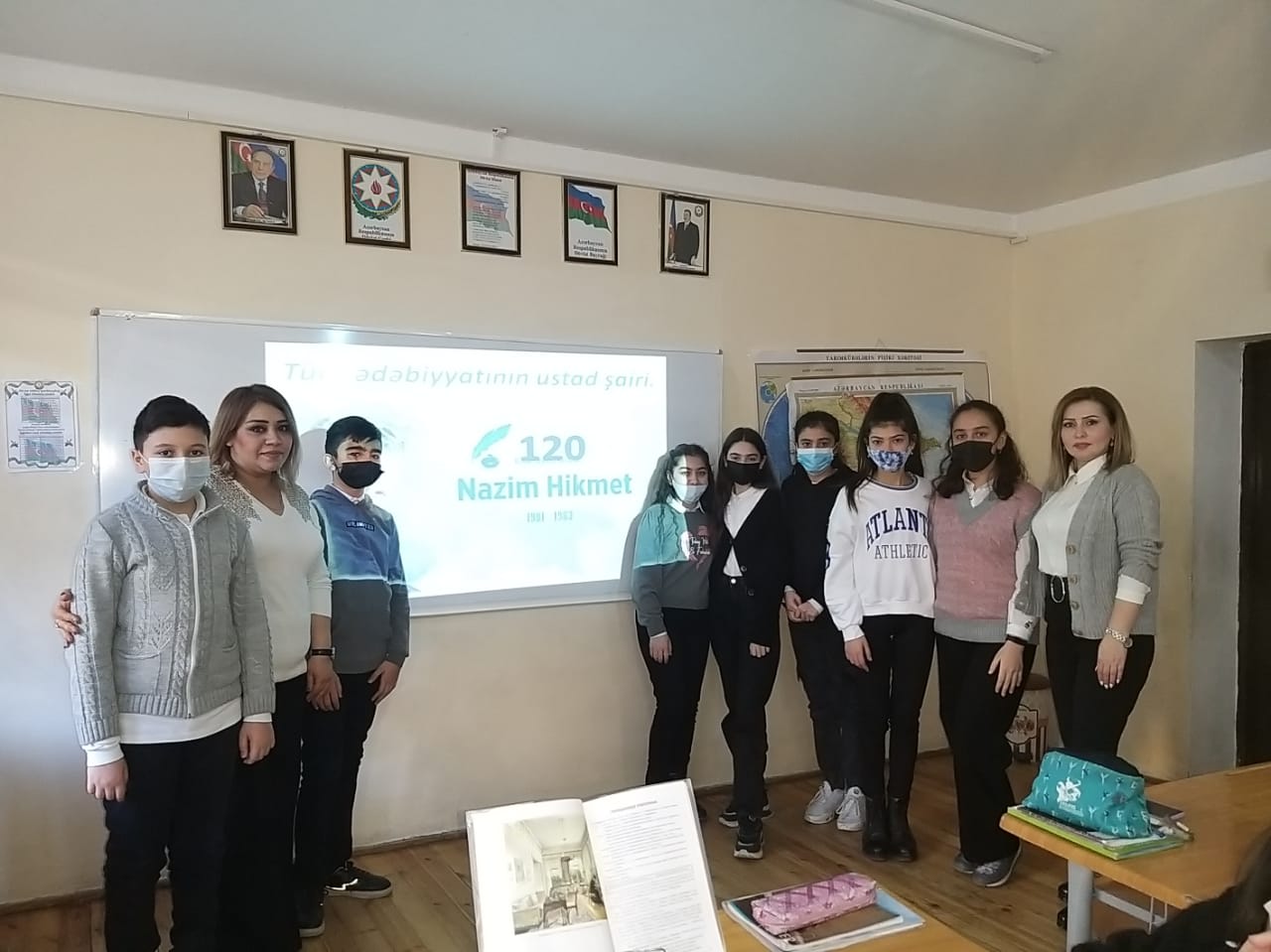 Tədbiri kitabxanaçı Asya Qurbanova açaraq, şairinin həyat və yaradıcılığı haqqında məlumat verdi və bilirdiki Nazim Hikmət Azərbaycan xalqının və ədəbiyyatının yaxın dostu idi. O, dəfələrlə Bakıya gəlmiş, Azərbaycan şair və yazıçıları ilə dostluq və yaradıcılıq əlaqəsi saxlamışdır. Azərbaycana həsr olunmuş şeirləri, Azərbaycan mədəniyyətinə dair məqalə və xatirələri vardır. Əsərləri Azərbaycanda dönə-dönə nəşr olunmuş, pyesləri tamaşaya qoyulmuşdur. Şagirdlər: Kamran Haciyev, Əliyeva Fəridə, Ağayeva Səma, Tapdıqova Məryəm şairin şeirlərini söylədilər. Sonda şagirdlərə "Məmləkətim" şeiri şairin öz səsi ilə video yazı formasında təqdim olundu. Sonda kitabxanaçı ədəbiyyat müəllimi Laura Hacıyevaya öz təşəkkürünü bildirdi və xatirə şəkli çəkdirdilər.