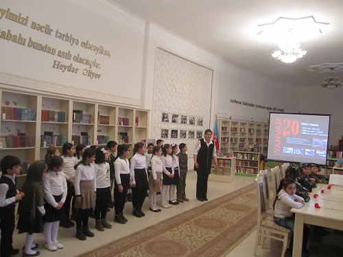 Gəncə şəhər Mərkəzləşdirilmiş Kitabxana Sisteminin Uşaq şöbəsində 18.01.22-ci il tarixində 20 Yanvar faciəsinin 32-ci ildönümü ilə əlaqədar olaraq “20-Yanvar qanlı imperiyanın sonunun başlangıcı” adlı ədəbi-bədii kompozisiya keçirildi. Əvvəlcə şəhidlərin xatirəsi bir dəqiqəlik sükutla yad edildi və mövzu ilə əlaqədar video-çarx izlənildi.