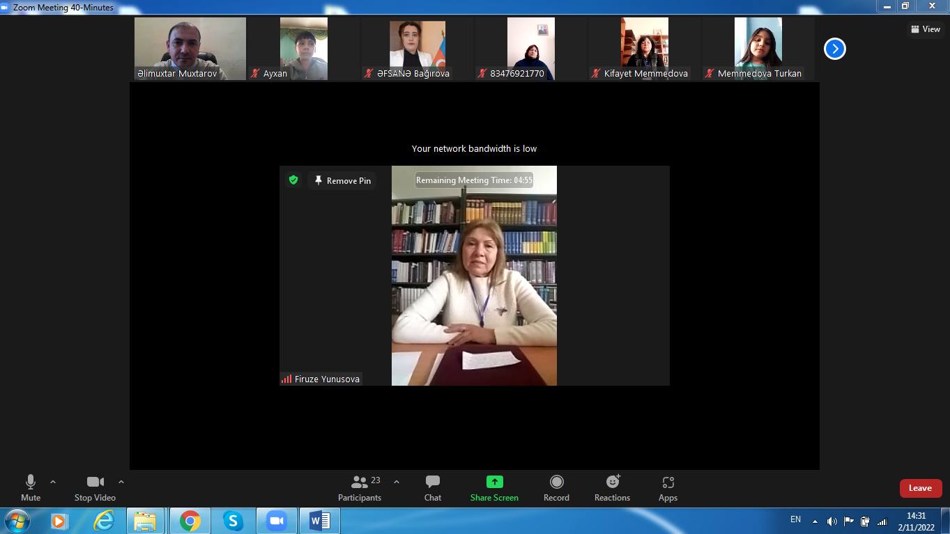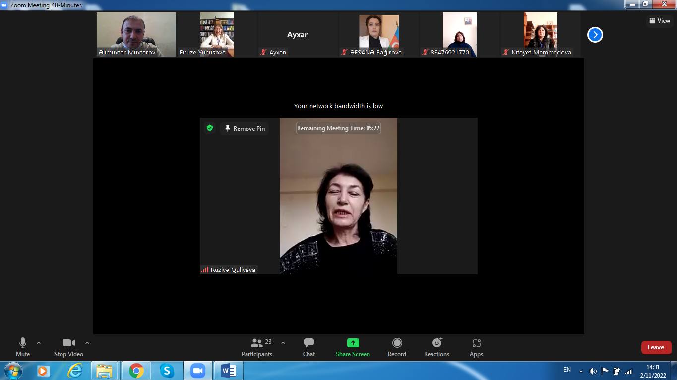 Sonra AMEA-nın Gəncə bölməsi, N.Gəncəvi Mərkəzinin Böyük elmi işçisi,Filologiya üzrə fəlsəfə doktoru Əlimuxtar Muxtarov söylədi ki,44 günlük Vətən müharibəsində Ali Baş Komandan İlham Əliyevin rəhbərliyi ilə ordu və xalq vətənin müdafiəsi və torpaqlarımızın işğaldan azad olunması uğrunda bir yumruq kimi birləşdi.Güclü ordumuz qısa bir vaxtda torpaqlarımızı işğaldan azad etdi. Az keçmədi ki, Ali Baş Komandan zəfər xəbərini xalqımıza çatdırdı : Əziz Şuşa, sən azadsan! Əziz Şuşa, biz qayıtmışıq, biz səni dirçəldəcəyik! Şuşa bizimdir! Qarabağ Azərbaycandır! Sonra çıxış edənlər Cıdır düzündə “Xarıbülbül” musiqi festivalının keçirilməsindən və M.P. Vaqifin məqbərəsinin yenidən qurulmasından, X.B.Natəvanın, Bülbülün, Ü.Hacıbəyovun güllələnmiş heykəllərinin bərpa olunub Şuşaya qaytarılmasından danışdılar.