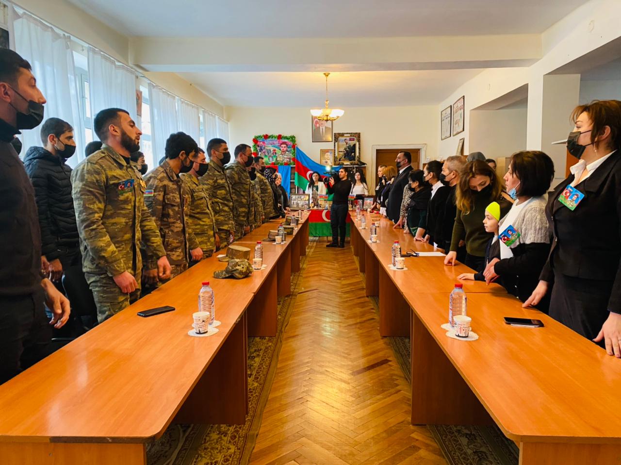 16.02.2022-ci il tarixdə Gəncə Regional Mədəniyyət İdarəsi Gəncə şəhər Mərkəzləşdirilmiş Kitabxana Sistemi Mərkəzi Kitabxananın oxu zalında II Qarabağ müharibəsinin şəhidləri Taleh Yusifov və Qəzənfər Abdullayevin xatirəsinə həsr olunmuş “Şəhidlik zirvəsinə ucalanlar”adlı görüş keçirildi.Tədbir şəhid anaları Mələk Yusifova, Zəminə Salmanova, şəhidlərin ailə üzvləri,döyüş yoldaşları, dostları, sinif yoldaşları, 777 saylı hərbi hissənin zabitləri, Gəncə Dövlət Universitetnin tarix kafedrasinin baş müəllimi Bəxtiyar Məhərrəmov, Gəncə Yazıçılar Birliyinin baş məsləhətçisi və uşaq ədəbiyyatının görkəmli nümayəndəsi şairə Aləmzər Əlizadə, “Novosti Гянджа”qəzetinin müxbiri Mahir İsayev, Gəncə Maarif Evi İctimai Birliyinin rəhbəri İmamverdi Vəliyev, Samux rayonu Ziyadlı kənd tam orta məktəbinin müəllim və şagirdləri, ,Gəncə şəhər 37 saylı tam orta məktəbin şagirdləri, Gəncə şəhər Mehdi Mehdizadə adına 4 saylı tam orta məktəbin şagirdi Türkan Tağıyeva , Tədbir Azərbaycan Respublikasının ərazi bütövlüyü yolunda canını qurban vermiş Vətən müharibəsi şəhidlərinin əziz xatirəsi bir dəqiqəlik sükutla yad edilməklə başladı.. Gəncə şəhər MKS- nin direktor əvəzi Fəridə Qədimova tədbiri açıq elan edərək şanlı ordumuzun 44 günlük Vətən müharibəsində göstərdiyi böyük qəhrəmanlıq nəticəsində işğal altında olan torpaqlarımızın mənfur düşməndən azad edilməsindən , igid oğullarımızın misli görünməmiş şücaətindən , və bu cəngavərlərin igidllikləri unutmamağa, gələcək nəsillərə ötürməkdən danışdı. O, şəhidlərimizin övladlarının gələcəyinə görə hamımızın məsuliyyət daşıdığını, onların xoşbəxtliyinin təminatında əlimizdən gələn hər şeyi etməyin vacibliyini vurğuladi. Gəncə Dövlət Universitetnin tarix kafedrasinin baş müəllimi Bəxtiyar Məhərrəmov, şairə Aləmzər Əlizadə və b. Cənab Ali Baş Komandan İlham Əliyevin rəhbərliyi altında Azərbaycan Ordusu qızıl hərflərlə zəfər tariximizə yeni səhifə yazmasından, onun rəhbərliyi altında tariximizin ən şərəfli günlərini yaşayan respublikamız bütün dünyada qalib dövlət, xalqımız isə məğrur xalq kimi tanınmasından, şəhidlərimizin xatirəsinə həsr olunmuş tədbirlərin mütəmadi keçirilməli olduğunu, vətən yolunda şəhid olmuş hər bir insanın xatirəsinin daima əziz tutulmasının önəmindən danışdı. Tədbirdə çıxış edən şəhid ailələrinin üzvləri dövlət rəhbərliyinin hər zaman diqqət və qayğısının hiss edildiyini vurğuladılar və göstərilən diqqət və qayğıya görə Azərbaycan Respublikasının Prezidenti, Ali Baş Komandan İlham Əliyevə və Azərbaycan Respublikasının Birinci vitse-prezidenti Mehriban xanım Əliyevaya öz dərin minnətdarlıqlarını bildirdilər. Tədbirdə məktəblilərin ifasında vətənpərvərlik mövzusunda şeirlər səsləndirildi. MKS-nin direktor əvəzi Fəridə Qədimova şəhid analarına belə qəhrəman övladlar yetişdirdikləri üçün minnətdarlıq edərək qəhrəman oğullar var olduqca bu Vətənin də var olacağını söylədi!
