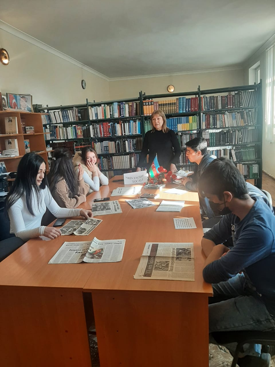 Tədbirdə əvvəlcə faciə qurbanlarının xatirəsi bir dəqiqəlik sükutla yad edildi. Sonra filialın müdiri Firuzə Yunusova Xocalı Soyqırımı haqqında geniş çıxış etdi. Filialın kitabxanaçısı Günel Tanırverdiyeva öz çıxışında II Qarabağ müharibəsində Xocalı rayonunun azad olunmuş kəndinlərindən, Xocalı üzərində Azərbaycanın suverenliyinin bərqərar olunmasından, Azərbaycan Respublikasının ərazi bütövlüyünün bərpa olunmasından bəhs etdi.