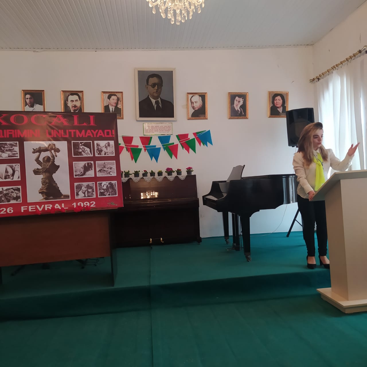 Gəncə Regional Mədəniyyət Idarəsi Gəncə şəhər 4 nömrəli Uşaq Musiqi Məktəbində "Tarixlərdən silinməyən Xocalı" adlı anım günü keçirildi. İlk öncə Məktəbin Direktoru Aynur Şixiyeva çıxış edərək Xocalı soyqırımının günahsız qurbanlarının , Vətən uğrunda canından keçmiş oğullarımızın əziz xatirəsini 1 dəqiqəlik sükutla yad etdilər. Məktəbin fortepiano şöbəsinin müəllimi Məmmədova Günel Xəqani qızı , nəzəriyyə şöbəsinin müəllimi Ələkbərova Səkinə Telman qızı Xocalı soyqırımı ilə bağlı çıxış etdilər. Məktəbin şagirdləri Xocalı soyqırımına həsr olunan şeirlər səsləndirdi.
