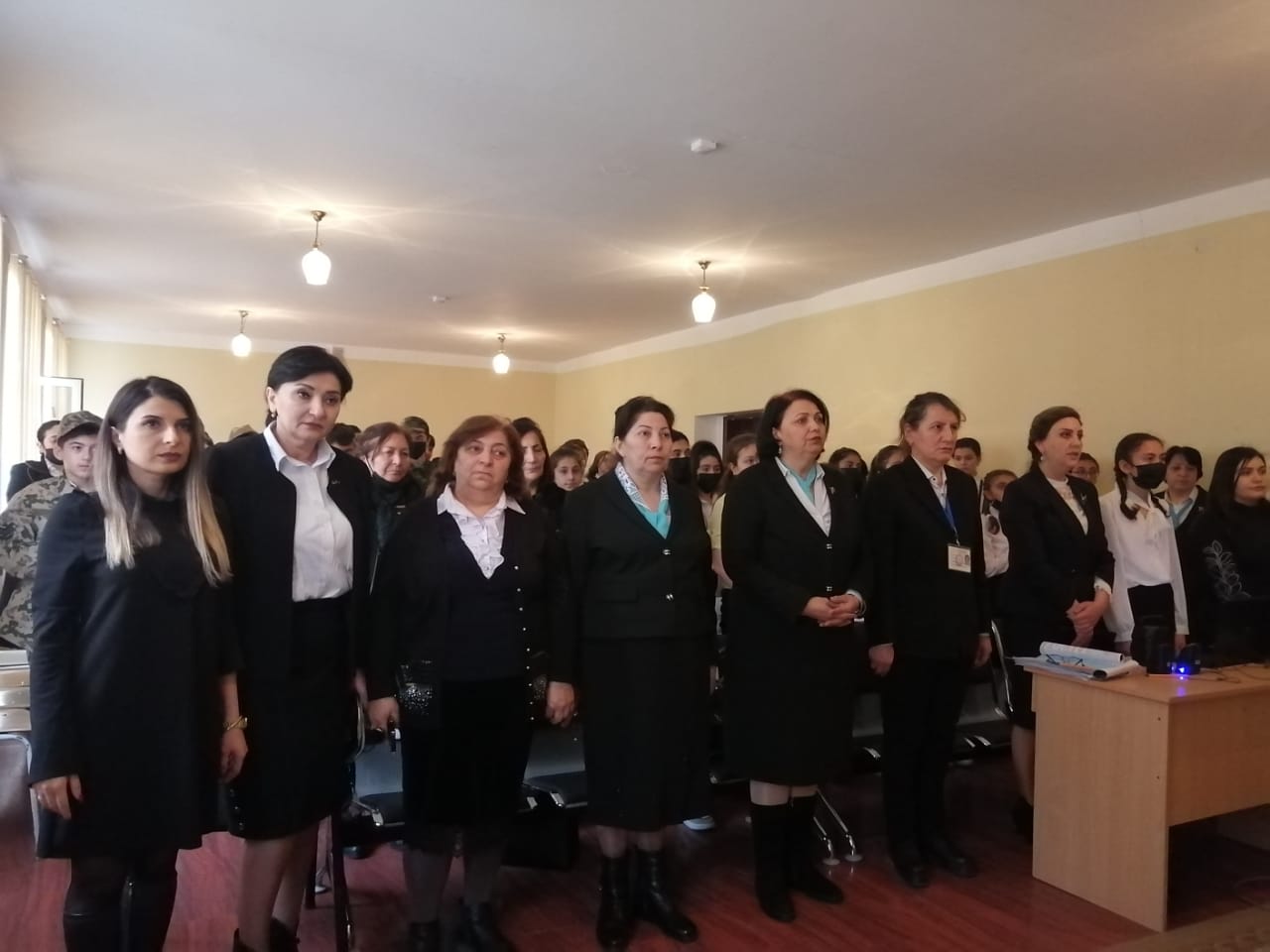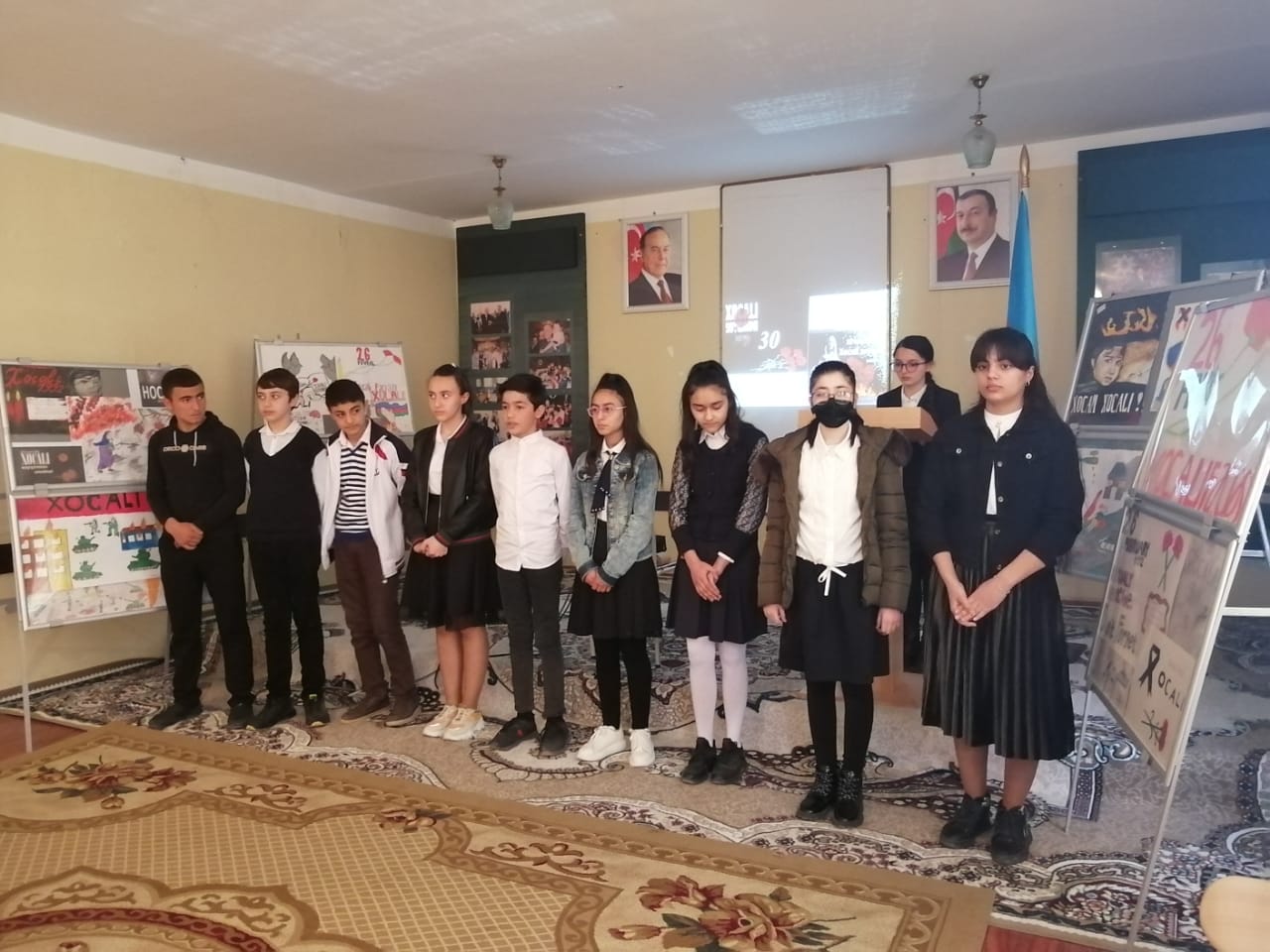 Gəncə Regional Mədəniyyət İdarəsi Gəncə şəhər Mərkəzləşdirilmiş Kitabxana Sisteminin 19 saylı kitabxana filialı 25.02.2022-ci il tarixində Gəncə şəhər Şah İsmayil Xətai adına 13 saylı tam orta məktəbin müəllim və şagird kollektivi ilə birgə 26 Fevral Xocalı soyqıırımının 30 illiyi ilə əlaqədar “Xocalı naləsi məktəblilərin qəlbində”adlı ədəbi-bədii kompozisiya keçirdi. Tədbirdə Xocalı şəhidləri və Vətən müharibəsi şəhidlərinin ruhları bir dəqiqəlik sükutla yad edildi. Tədbiri Gəncə şəhər Şah İsmayil Xətai adına 13 saylı tam orta məktəbin direkrotu Gülnara Hüseynova açıq elan etdikdən sonra ”Xocalı qan yaddaşımız”, təlim-tərbiyə işləri üzrə direktor müavini Razim Hacıyev və Aygün Ələkbərovanın “Ümummilli Lider Heydər Əliyevin Xoclı faciəsinə münasibəti”, Uşaq birliyi təşkilatının rəhbəri Qənifə Nağıyeva “Xocalıya ədalət”, məktəbin psixoloqu Qətibə Nağıyeva “Xocalı faciəsi sağalmayan yaradır”,məktəbin hərbi rəhbəri Rəşad İbrahimov “hər bir şagird gələcəyin əsgəridir” adlı çıxışlar etdilər. Məktəbin Azərbaycan dili, ədəbiyyat müəllimələrindən Mərquşə İbrahimova, Bahar Məmmədova,Qətibə Məmmədova, Səlfinaz Cəfərova, Sidqə Məmmədova, Züleyxa Mirzəyevanın şagirdlərlə hazırladıqları səhnəciklər və kompozisiyalar nümayiş edildi. VI-siniflər ”Xocalı sakinlərinin fəryadı -bayatılar”, VIIa-sinif şagirdləri “Ana fəryadı”,”Ana övladı ilə” səhnəciklər,VIId sinif şagirdi Fidan Musayeva Xocalı haqqında öz yazdığı şeir, VIIç sinif şagirdlər “Lay-lay Xocalım lay-lay” adlı kompozisiya, VIIIç sinif şagirdlərindən Cəmilə Mahmudova, Nərmin Həmzəyeva “Azərbaycan” mahnısını ifa etdilər. VIIId –sinif şagirdi tədbirin aparıcısı Şəhla Baxşəliyeva ingilis və türk dillərində “Xocalı faciəsi” adlı təqdimat etdi. Gəncə şəhər Şah İsmayil Xətai adına 13 saylı tam orta məktəbin təsviri incəsənət müəlliməsi Mətanət Abbasovanın rəhbərliyi ilə təşkil olunmuş “Xocalı naləsi məktəblilərin gözü ilə” adlı rəsm sərgisinə baxış və “Xocalı soyqırımı-30 il” adlı videoçarx nümayiş edildi. Sonda Gəncə şəhər Mərkəzləşdirilmiş Kitabxana Sisteminin 19 saylı kitabxana filialının müdiri Elza Əliyeva tədbirin təşkil olunmasında əməyi keçən məktəb kollektivinə təşəkkür etdi.