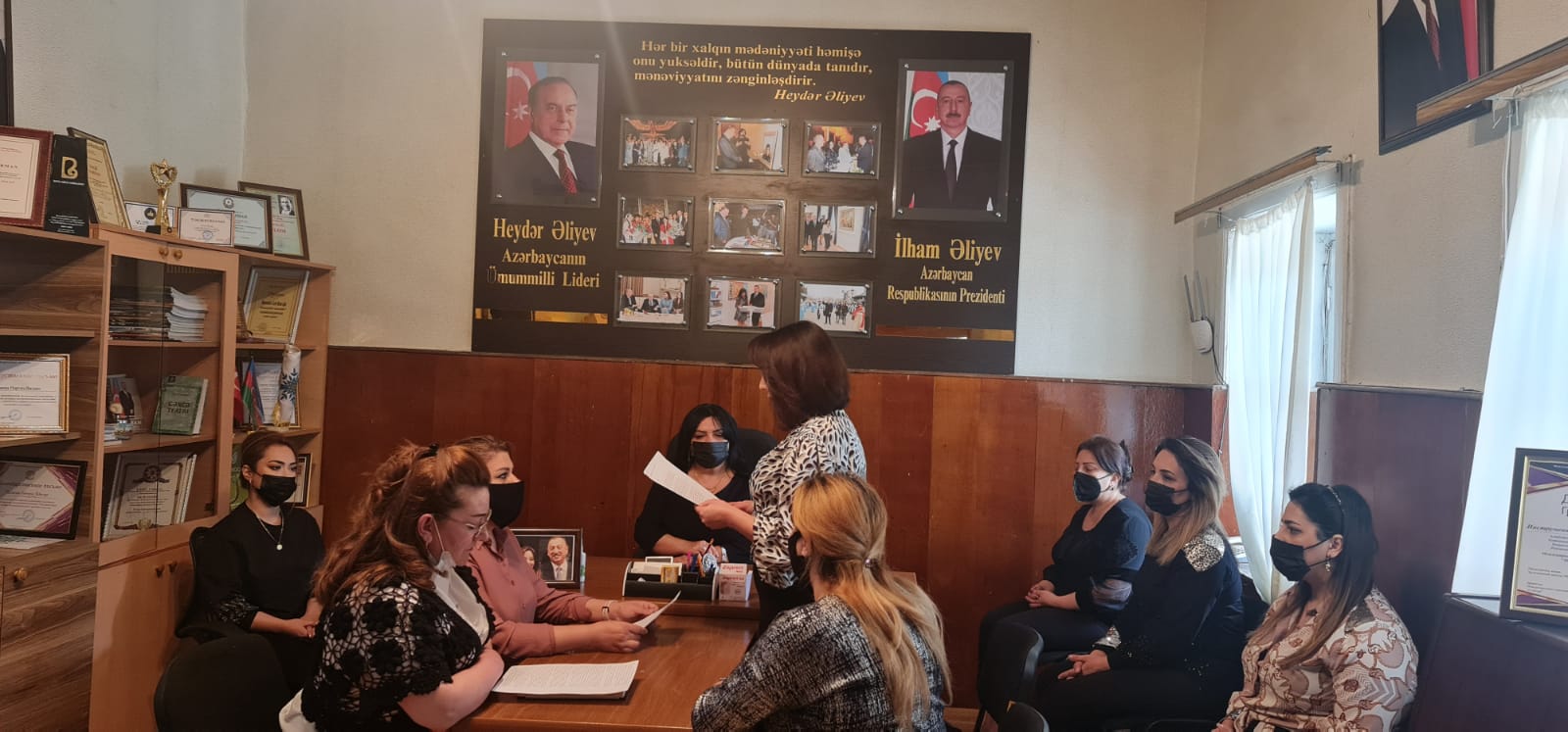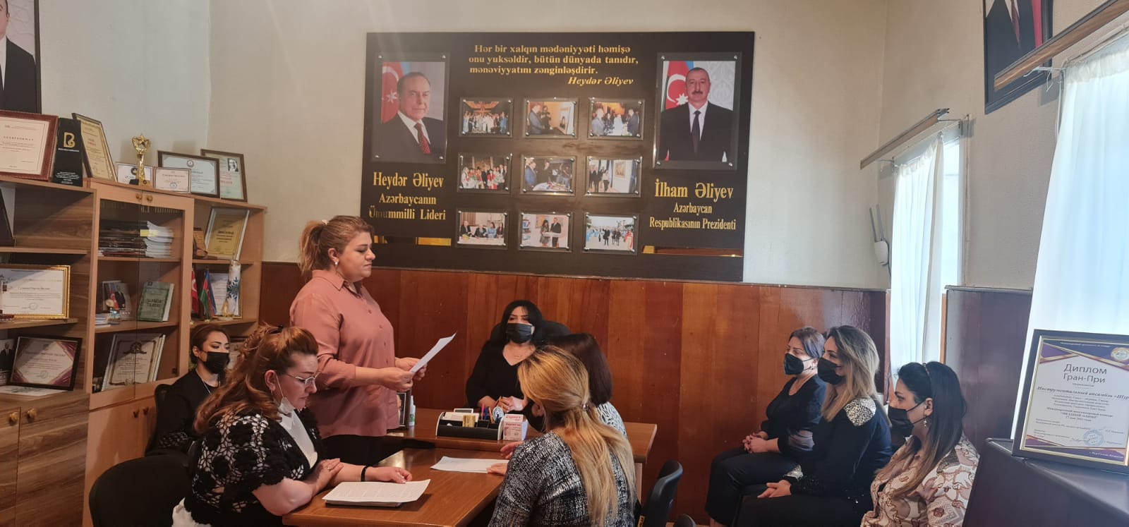 Sonra dəirmi masa ətrafında toplaşan tədbir iştirakçıları: Məktəbin tədris işləri üzrə direktor müavini Ruhanə Həsənova, f-no şöbəsinin müdiri Aynurə Tağıyeva və nəzəriyyə şöbəsinin müdiri Gülbəniz Həsənova 31 mart tarixi yaddaşımızdan silinməyən qan yaddaşımız mövzusunda məruzə ilə çıxışlar etdilər
