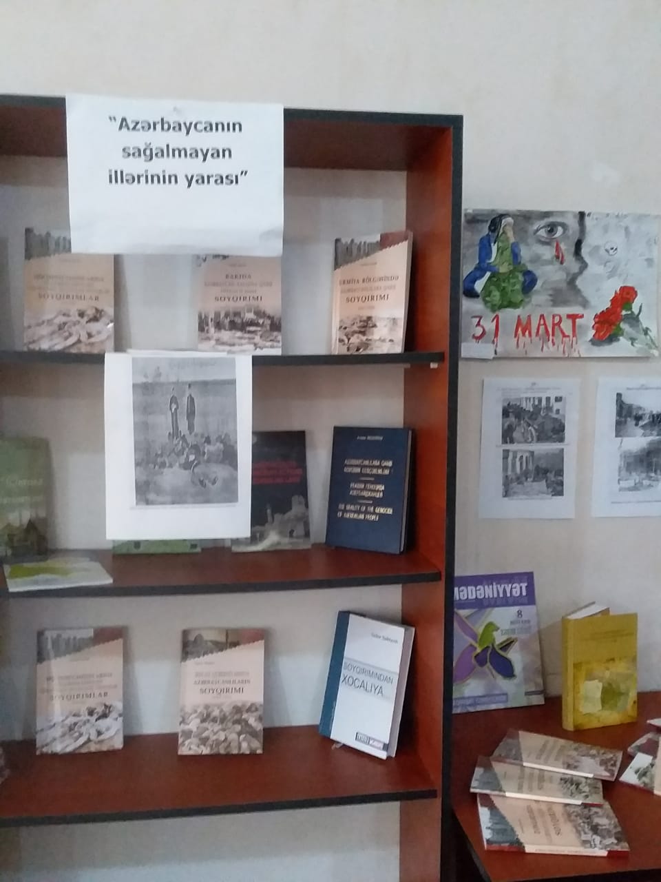 Gəncə Regional Mədəniyyət İdarəsi Gəncə Şəhər Mərkəzləşdirilmiş Kitabxana Sisteminin 6saylı kitabxana filialı 31.03.2022 ci il tarixində 31 mart Azərbaycanlıların Soyqrımı Günü ilə əlaqədar "Azərbaycanın sağalmayan illərinin yarası"başlıqlı sərgi təşkil etdi.Tədbir Ismət Qayıbov adına 1saylı tam orta məktəbin kitabxanasında, Azərbaycanın bütövlüyü uğrunda canlarından keçmiş şəhidlərin ruhunu bir dəqiqəlik sükutla yad edilməsi ilə başladı.Kitabxananın müdiri Məryam Məmmədova təbrik iştirakçılarını salamladı və mart soyqrımları haqqında məlumat verdi.Sonra məktəbin kitabxanasının müdiri Xəyalə Isgəndərova qeyd etdi ki,soyqrımlar zamanı 12 minə yaxın azərbaycanlı qətlə yetirilmişdir.Sonda kitabxanaçı Günel Namazova sərgidə olan soyqrım kitabları haqqında məlumat verdi.Tədbirdə iştirak edən gənclərin soyqrım aid kitablarla bağlı sualları cavablandırıldı.
