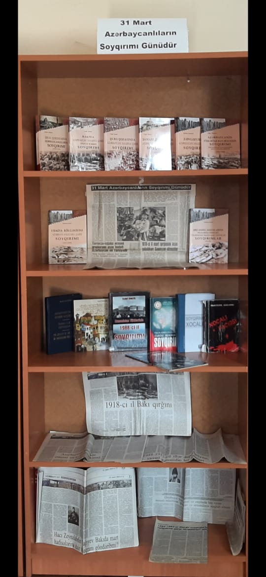 Gəncə Regional Mədəniyyət İdarəsi Gəncə şəhər Mərkəzləşdirimiş Kitabxana Sisteminin 2 saylı kitabxana filialı 31.03.2022-ci il tarixində Azərbaycanlıların Soyqırımı Günü ilə əlaqədar “Tarixi yaddaşımızdan silinməyən iz” adlı informasiya saatı keçirdi. Əvvəlcə soyqırım qurbanlarının xatirəsi bir dəqiqəlik sükutla yad olundu. Tədbiri filialın böyük kitabxanaçısı Kifayət Məmmədova açdı və qeyd etdi ki, azərbaycanlılara qarşı törədilmiş soyqırımdan 104 il ötür. 1918-ci ilin mart soyqırımı öz amansızlığına və miqyasına görə təkcə Azərbaycan tarixində deyil, bəşər tarixində də ən qanlı faciələrdən biridir. Erməni cəlladları uşaq, qoca, qadın demədən dinc əhalini kütləvi surətdə qətlə yetirmişdilər. On minlərlə azərbaycanlı qılıncdan, süngüdən keçirilmiş, diri-diri yandırılmışdır. Milli memarlıq incilərini, məktəbləri, xəstəxanaları, məscid və mədəni abidələri dağıtmışdılar. Azərbaycanlıların soyqırımı təkcə Bakıda deyil, Şamaxı, Quba qəzalarında, Qarabağda, Zəngəzurda, Naxçıvanda, Lənkəranda, Gəncədə, İrəvanda və digər bölgələrdə xüsusi qəddarlıqla həyata keçirilmişdi. Xalqımıza qarşı törədilmiş bu cinayəti heç vaxt unutmayacaq, onların xatirəsini daim yaşadacağıq. 2 saylı filialda “31 Mart Azərbaycanlıların Soyqırımı Günüdür” adlı sərgi nümayiş olundu. Tədbirdə filialın oxucuları iştirak etdilər.