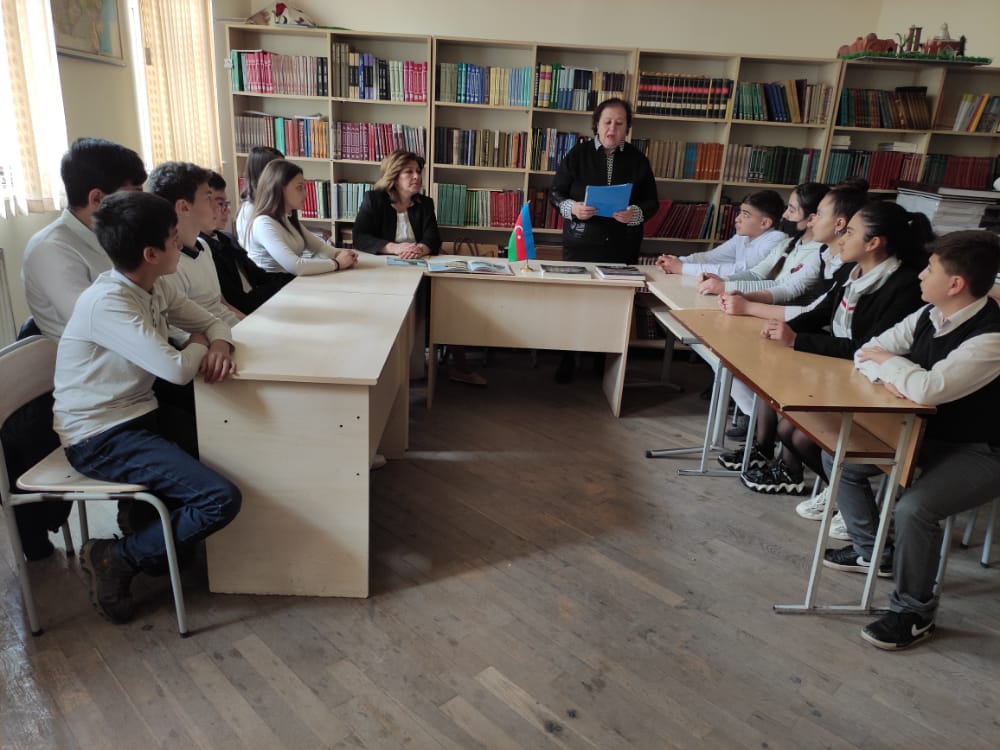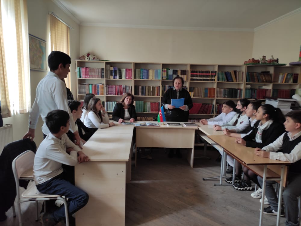 Gəncə Regional Mədəniyyət İdarəsi Gəncə şəhər Mərkəzləşdirilmiş Kitabxana Sisteminin 24 saylı kitabxana filialı 32 saylı tam orta məktəbdə "Tarixləşən daş yaddaşımız" adlı söhbət keçirdi. Tədbirdə məktəbin coğrafiya müəllimi Sevda Qasımova və həmin məktəbin şagirdləri iştirak etdilər.Tədbiri giriş sözü ilə filialın böyük kitabxanaçısı Təranə Aslanova açaraq bildirdi ki, 18 aprel dünya Beynəlxalq Abidələr və Tarixi Yerlər Günü kimi qeyd olunur .Bu əlamətdar gün Tarixi yerlər və abidələrin Mühafizəsi Şurasının təklifi üzrə UNESCO tərəfindən 1983-cü ildə təsis olunub.Məqsəd insanların diqqətini abidələrin və tarixi yerlərin qorunmasına yönəltməkdir. Abidələr və tarixi yerlər öz görkəmləri ilə xalqlarına hər an kimliyini, nəyə qadir olduğunu xatırladır, vətən sevgisi və ona sadiqlik hisslərini aşılayır.Ölkəmizdə də yaşı əsrləri və minillikləri əhatə edən tarixi abidələr mövcuddur. Azıx mağarasında tapılmış qədim insanın çənə sümüyü, Qobustanda aşkar edilmiş yaşayış məskənləri Azərbaycanda ən qədim dövrlərdən insanların məskunlaşdığını təsdiqləyir. Orta əsrlərə aid abidələr Qız qalası, Möminə Xatun türbəsi, Qarabağlar, Gülüstan, Allah -Allah türbələri, Şirvanşahlar sarayı, Şəkixan sarayı, Şuşa şəhərinin abidələri, Gəncə şəhərinin abidələri və s. nəinki Şərq hətta dünya memarlığının ən gözəl incilərindəndir. Tarixi abidələrimizin qorunması və gələcək nəsillərə çatdırılması istiqamətində Azərbaycan respublikasının prezidenti İlham Əliyev, Azərbaycanın 1-ci vitse-prezidenti, Heydər Əliyev fondunun prezidenti Mehriban Əliyeva ölkə daxilində və xaricində böyük işlər həyata keçirirlər. Məqsədimiz gənc nəslə abidələrimiz və onların qorunması haqqında məlumat verməkdir.