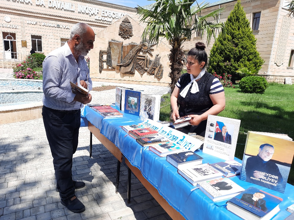Sərgidə Ümummilli Lider , görkəmli dövlət və ictimai-siyasi xadim Heydər Əliyevin zəngin irsini əks etdirən kitablar nümayiş olundu. Xidmət şöbəsinin işçiləri sərgidə nümayiş olunan kitablar barədə tədbir iştirakçılarına məlumat verdilər.