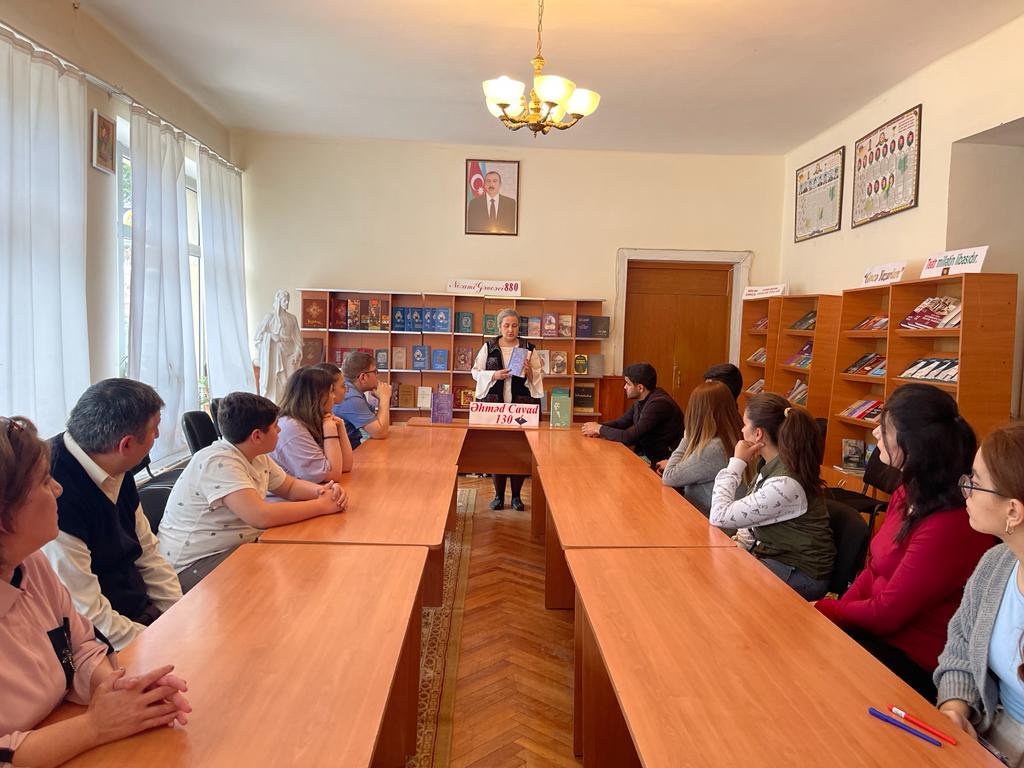 18 May 2022-ci il tarixdə şair , tərcüməçi Əhməd Cavadın 130 illiyinin qeyd edilməsi haqqında Azərbaycan Respublikası Prezidentinin Sərəncamına əsasən Gəncə şəhər Mərkəzləşdirilmiş Kitabxana Sisteminin Abonement şöbəsində “Əhməd Cavad yaradılcılığına səyahət “adlı biblioqrafiq icmal keçirildi. Tədbiri açan kitabxanaçı Afaq Bağırova Əhməd Cavadın həyat və yaradıcılığı haqqında məlumat verdi və kitabxananın fondunda olan Əhməd Cavad “Seçilmiş əsərləri”,”Əhməd Cavad Sən olasan gülüstan” və s,kitabarı ilə oxucuları tanış etdi.
