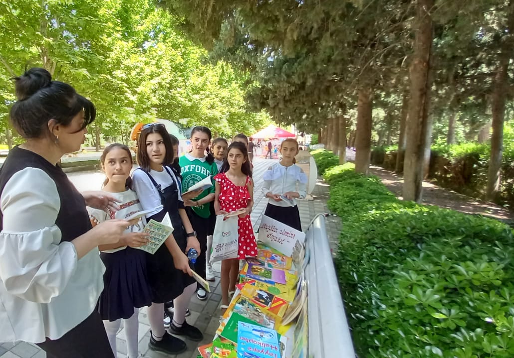Kitabxanaçı sərgiyə yaxınlaşan valdeynlərə kitabxananın ünvanı haqqında məlumat verdi və uşaqları kitabxanaya gətirmələrini tövsiyyə etdi.Sərgidə 100-dən çox uşaq kitabları nümayış olundu.