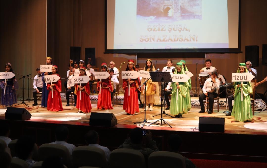 Konserti açan aparıcı Azərbaycanın bütövlüyü uğrunda canlarından keçən igidlərin əziz xatirəsini bir dəqiqəlik sükutla yad edilməsini xahiş etdi. Sonra Azərbaycan Respublikasının Prezidenti cənab İlham Əliyev Azərbaycan Respublikası Konstitusiyasını 109 maddəsinin 32 ci bəndini rəhbər tutaraq 2022 ci ili "ŞUŞA ili "elan etməsi bildirdi.