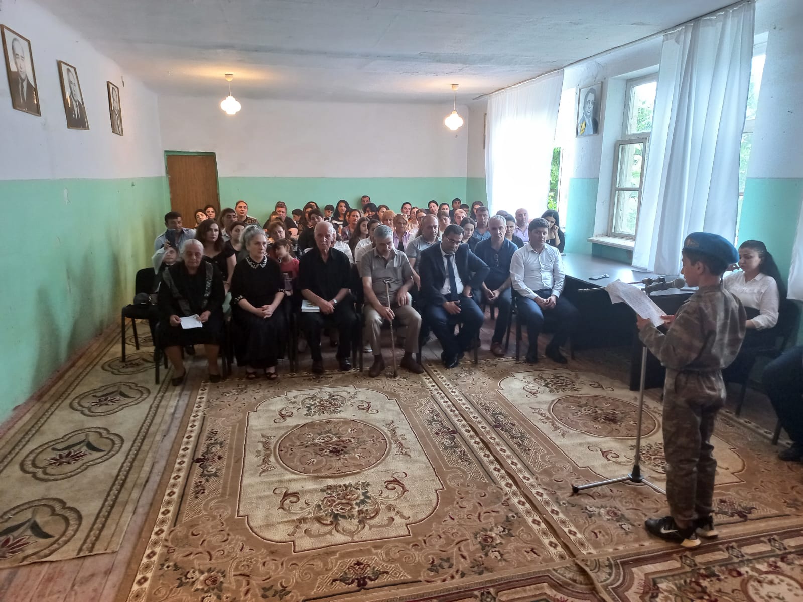 Şəhidlərin ruhu bir dəqiqəlik sükutla yad edildikdən sonra məktəbin müəllimləri Ceyhunə Tanrıverdiyevanın təqdimatında Aprel döyüşlərində qəhrəmancasına həlak olmuş kapitan Vaqif Dilqəm oğlu Bayramov və 44-günlük müharibənin ilk günü həlak olmuş məktəbin şagirdi 13 yaşlı şəhid Şəhriyar Qurbanov haqqında müəllifin "Şəhidin var Kapitan...",İtkin Nəsibov Habil İbrahim oğluna həsr olunmuş "Küknar ağacının əyri budağı"(müəllifin "Unutmadıq"kitabından),
