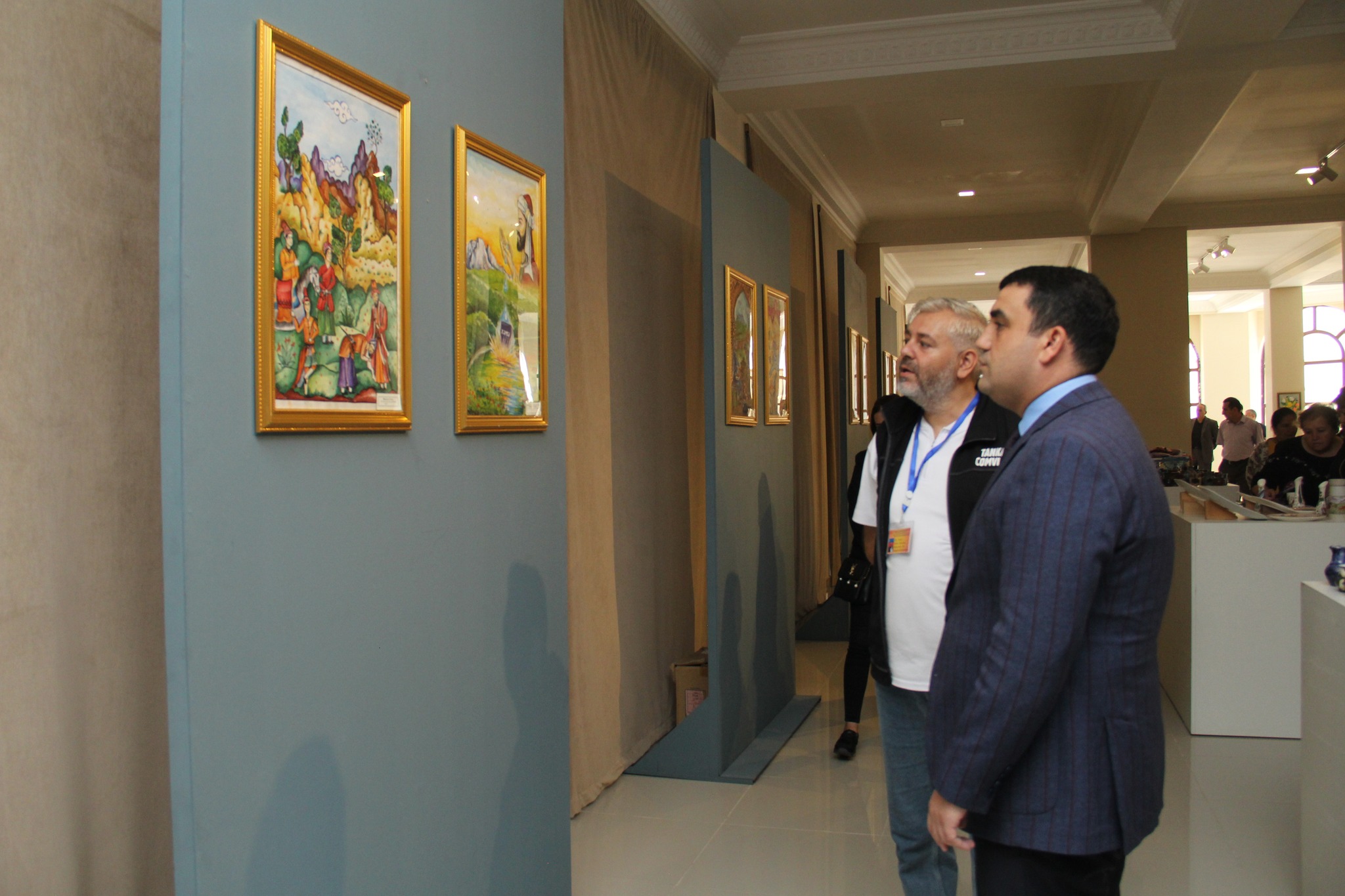 Sərgidə Gəncə şəhər Uşaq İncəsənət və Rəssamlıq Məktəblərinin rəsm əsərləri, Gəncədə yaşayıb-yaradan sənətkarlar: Saləddin Məhərrəmovun (ağac üzərində işləmə), Nizami Abbasovun (ağac üzərində oyma), Rasim Hüseynovun (cini qablar üzərində miniatür işləmə) və Rza Məmmədovun (dulusçuluq üzrə işləmə) miniatür nümunələri nümayiş edilmişdir.