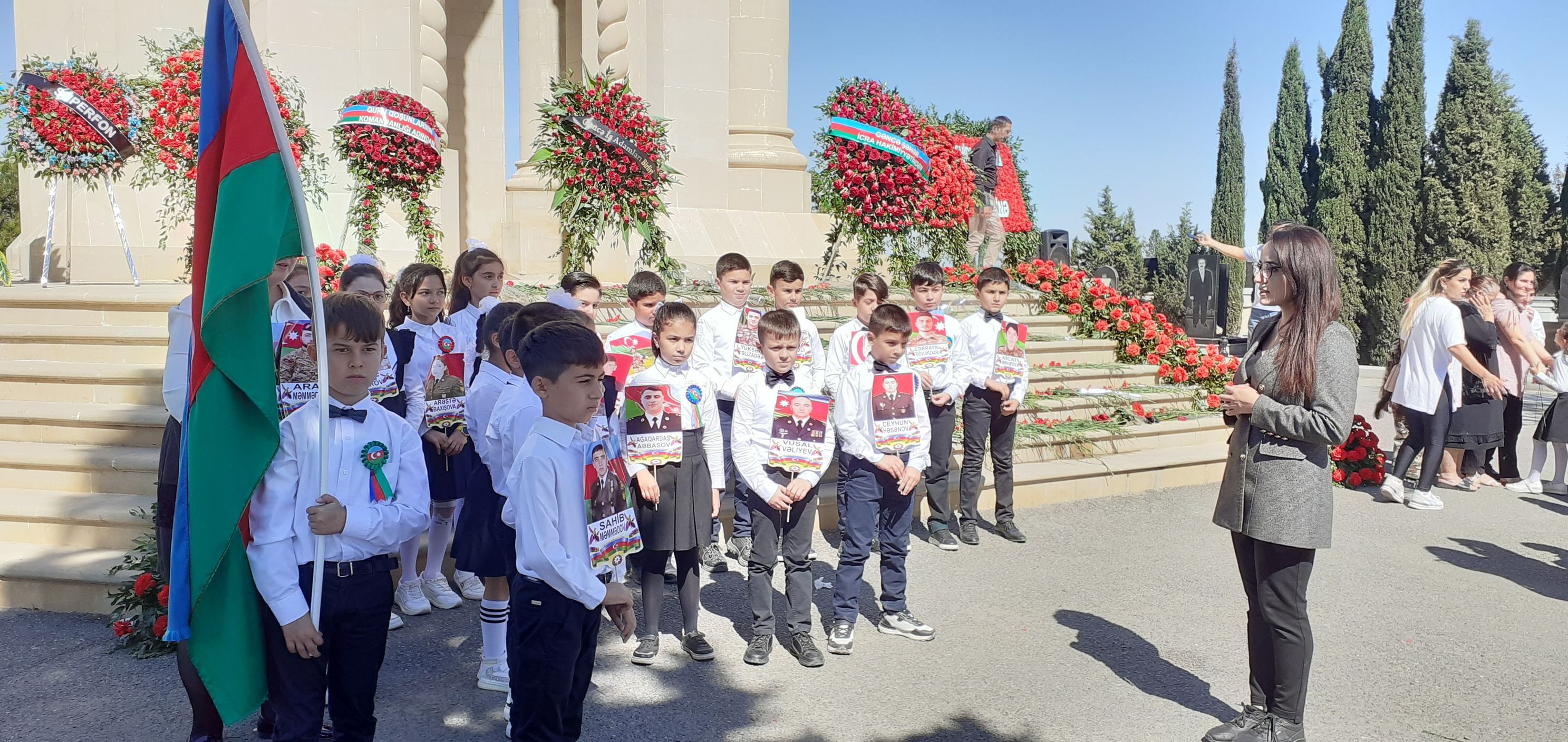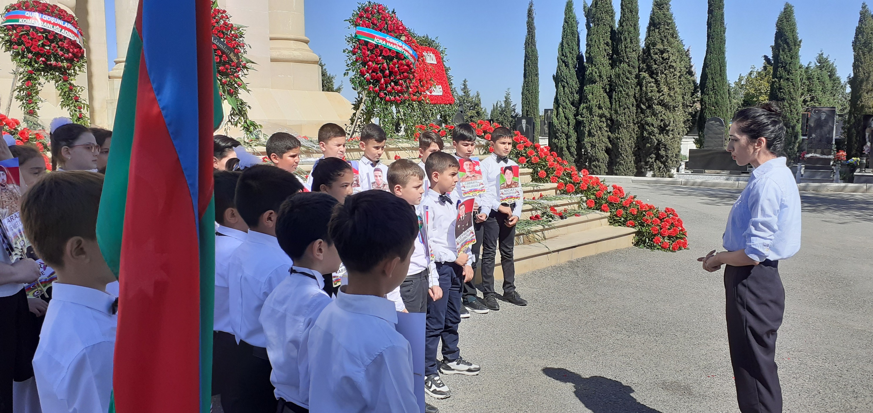Gəncə Regional Mədəniyyət İdarəsi Gəncə şəhər Heydər Əliyev Mərkəzi və Əhməd Cavad adına 2 nömrəli tam orta məktəb 27 sentyabr Anım günü ilə əlaqədar Gəncə Şəhidlər Xiyabanında “Tarix yazan qəhrəmanlar” adlı tədbir keçirib. Tədbirdə Əhməd Cavad adına 2 nömrəli tam orta məktəbin müəllimi və 4-cü sinif şagirdləri iştirak ediblər. Tədbirdə Azərbaycanın müstəqilliyi və ərazi bütövlüyü uğurunda Şəhid olan qəhrəman övladlarımızın məzarları ziyarət olunub, əziz xatirələri ehtiramla yad edilib. Əhməd Cavad adına 2 nömrəli tam orta məktəbin ibtidai sinif müəllimi Könül Rəşidova, Gəncə şəhər Heydər Əliyev Mərkəzinin baş fond mühafizi İlknur İsgəndərova, kiçik elmi işçisi Dursun Əliyeva və bələdçisi Sevinc Bədəlova məlumat verərək qeyd ediblər ki, 27 sentyabr 2020-ci il tarixdə Ermənistan silahlı qüvvələrinin Azərbaycana növbəti dəfə təxribatının qarşısını alınması məqsədilə Ali Baş Komandan İlham Əliyevin başçılığı ilə müzəffər Ordumuzun əks hücum əməliyyatı nəticəsində uzun illər düşmən tapdağı altında olan torpaqlarımız yağı düşmən tapdağından azad edildi. Vətən müharibəsinin təntənəsi təkcə işğal altındakı torpaqların yağı düşməndən qurtuluşu deyil, eyni zamanda, Azərbaycan xalqının milli kimliyinin nə qədər yüksək olduğunun bütün dünyaya nümayişidir. Biz ərazi bütövlüyümüzü və ədaləti bərpa etdik. Həmin dövrdə hər bir Azərbaycan vətəndaşı ordumuzun və dövlətimizin ətrafında sıx birləşərək, əlindən gələni əsirgəmədi. Ordu-xalq birliyi düşmən üzərində tarixi Qələbəmizə gətirib çıxartdı. Şəhidlərimiz hər zaman qəlbimizdə yaşayacaq! Sonda Əhməd Cavad adına 2 nömrəli tam orta məktəbin 4-cü sinif şagirdləri Vətənə və Şəhidlərə həsr olunmuş şeirlər söyləyiblər.