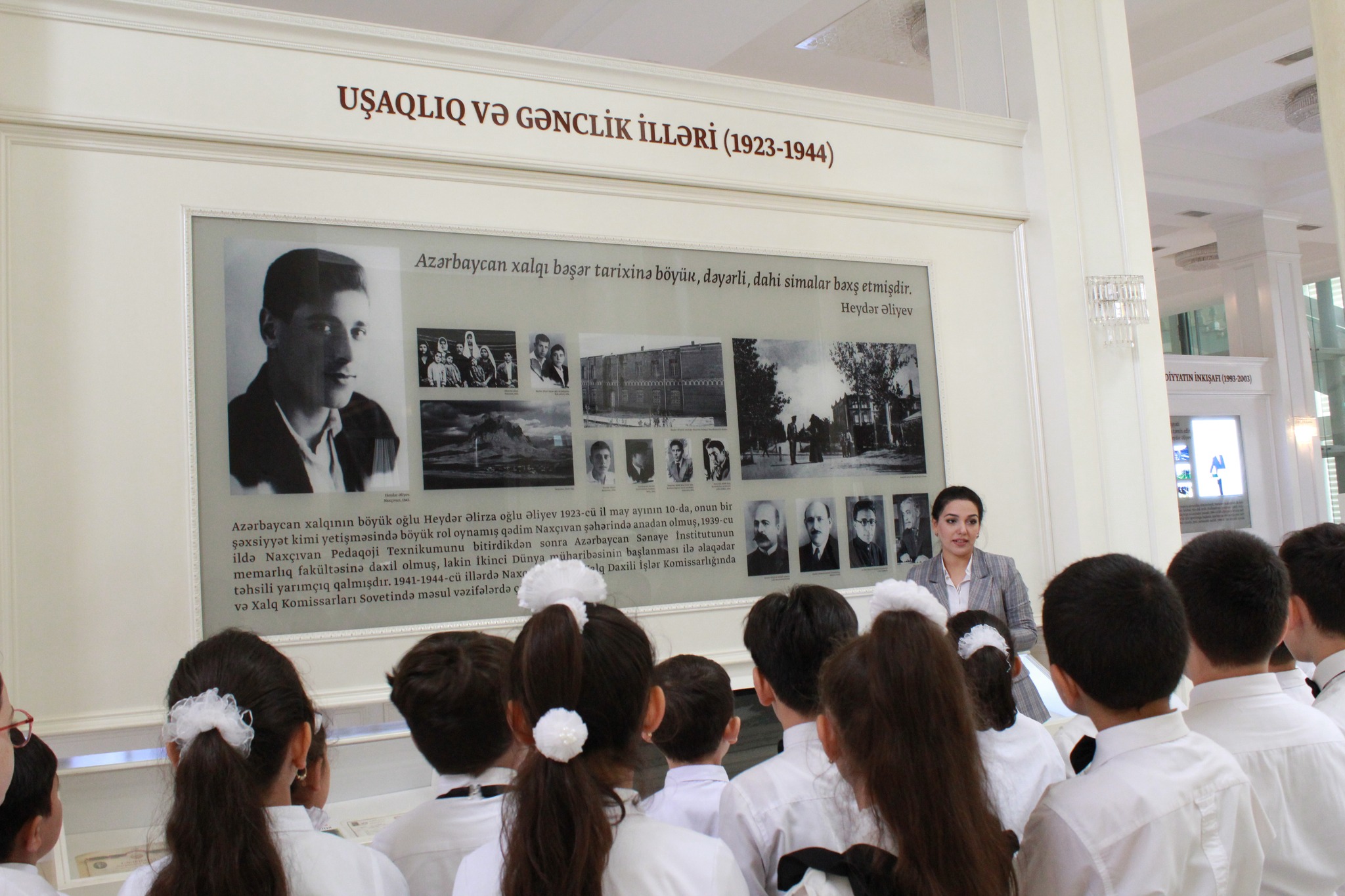 Tədbirdən əvvəl Gəncə şəhər Heydər Əliyev Mərkəzinin elmi işçisi Gülər Ellazova şagirdlərə Ulu Öndər Heydər Əliyev Xatirə Muzeyi haqqında məlumat verib.