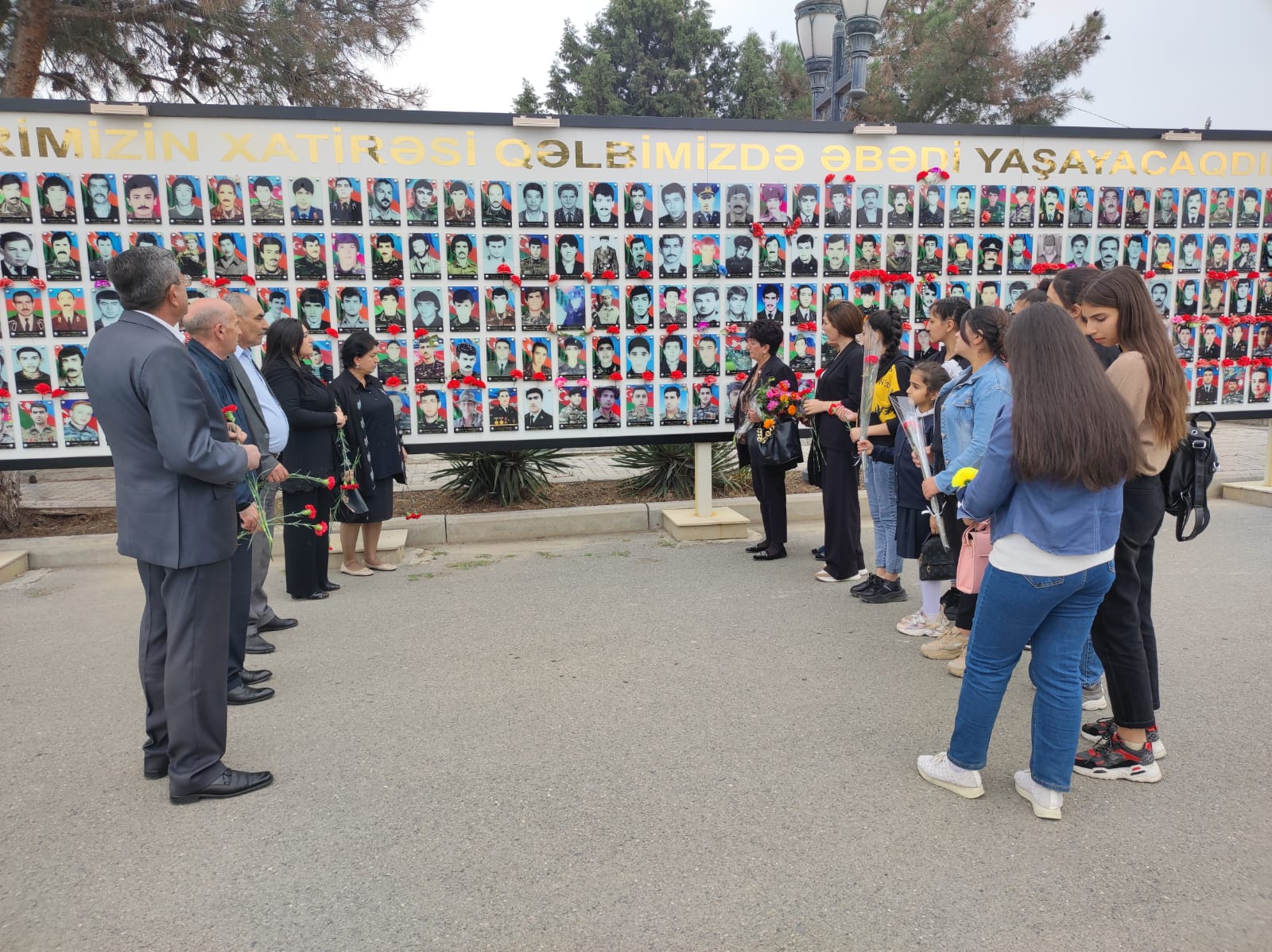Sonra Mədəniyyət Mərkəzinin kollektivi filiallarının əməkdaşları və kurs tələbələri ilə şəhidlər xiyabanına ziyarətə getdilər. Torpaqlarımızın azadlığı uğrunda şəhid olmuş Vətən övladlarının məzarları üzərinə tər qərənfillər düzdülər.