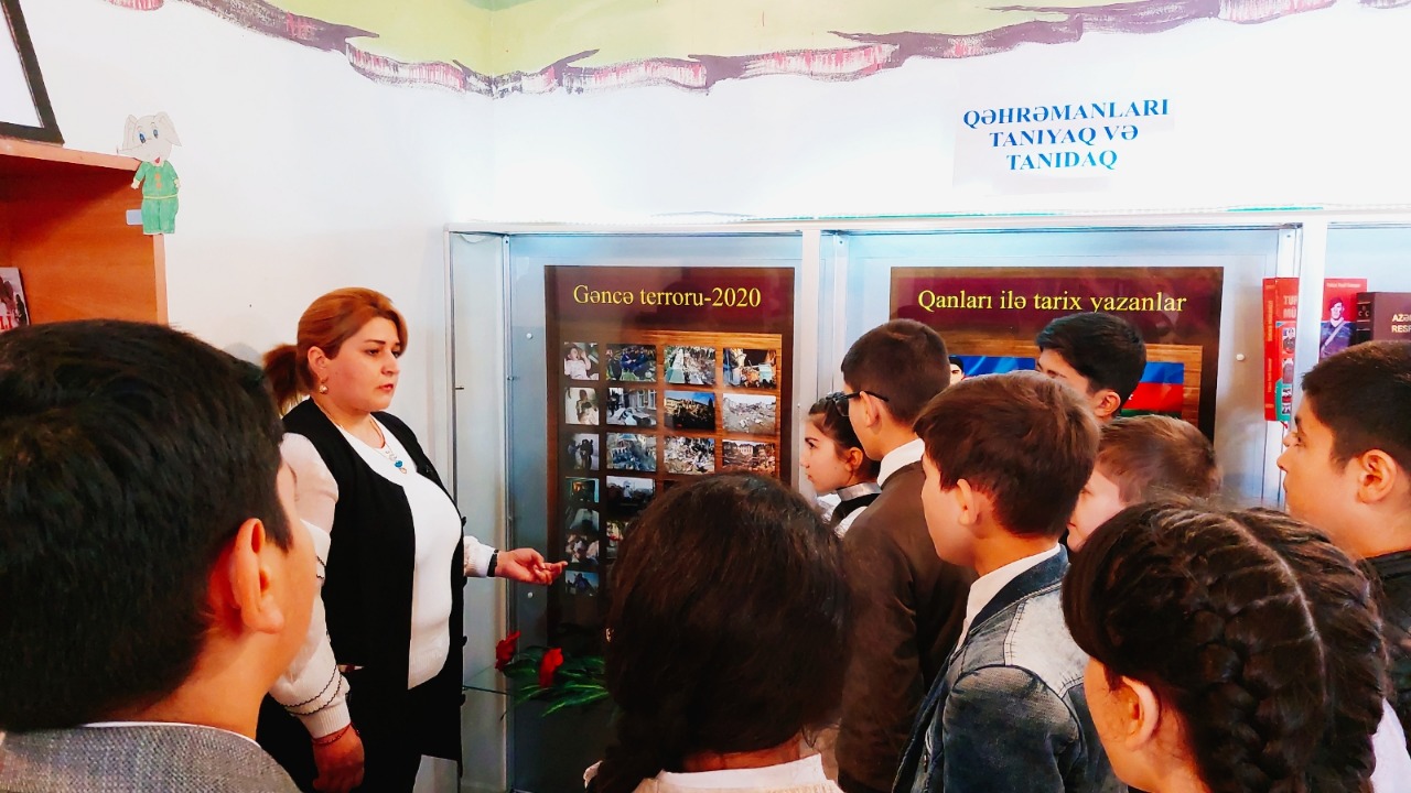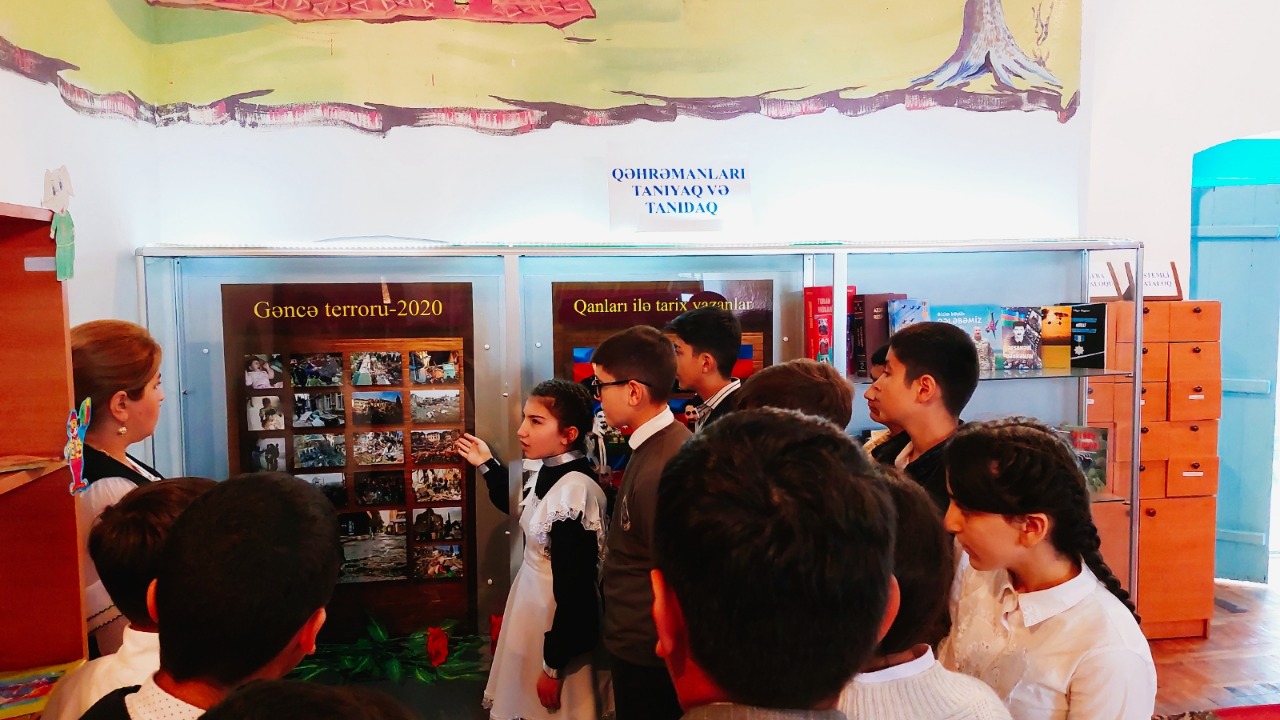 Gəncə Regional Mədəniyyət İdarəsi Gəncə şəhər Mərkəzləşdirilmiş Kitabxana Sisteminin 15 saylı kitabxana filialında “Gəncə terroru-2020” başlığı altında hazırlanmış fotostendə baxış keçirildi. Tədbiri15 saylı filialın kitabxanaçısı Esmira Məlikova apardı. Qeyd etdi ki, gördüyünüz kimi fotostenddə44 günlük Vətən müharibəsi günlərində Azərbaycanın ikinci böyük şəhəri olan doğma Gəncəmizin mənfur qonşularımız tərəfindən bombalanması nəticəsindəçoxsaylı insan tələfatı, baş vermiş dağıntılar, dəhşətli mənzərələr öz əksini tapmışdır. Döyüş meydanında Müzəffər Ordumuzun qarşısında duruş gətirə bilməyən düşmənimiz sivilləri hədəf almışdı. Raket hücumu nəticəsində həlak olan, yaralanan mülki şəxslər arasında azyaşlılar da vardı. Tədbirin iştirakçıları olan məktəblilər də həmin günləri yaxşı xatırladıqlarını və heç zaman unuda bilməyəcəkərini söylədilər.