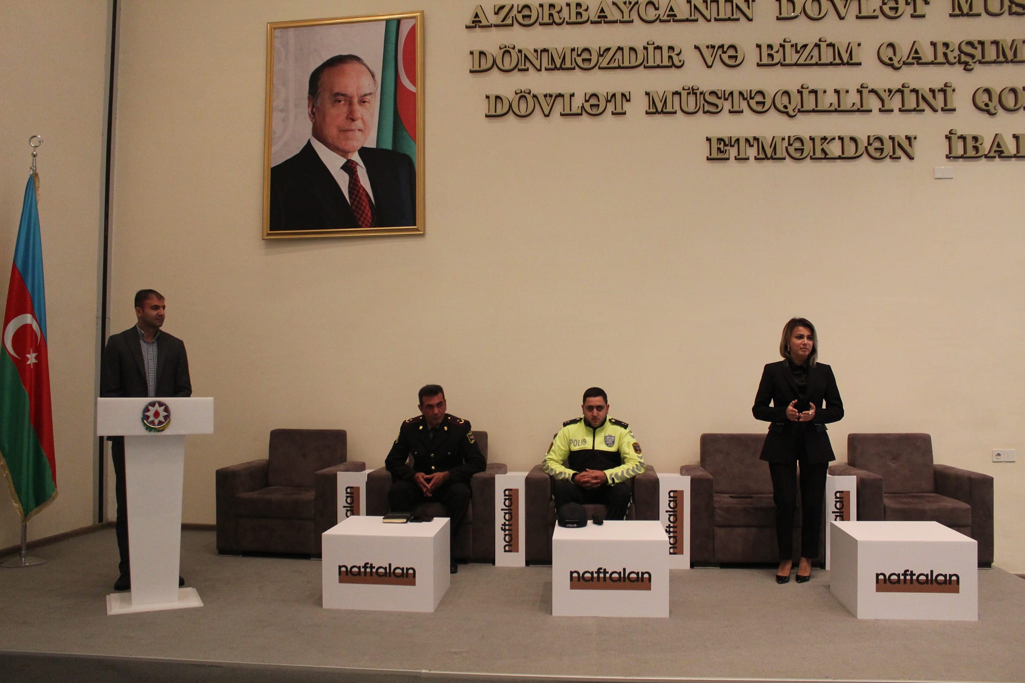 Naftalan şəhər Polis Şöbəsinin İctimai təhlükəsizlik bölməsinin rəisi Ceyhun Əliyev uşaqları diskusiyaya cəlb etmiş, suallarına geniş izah vermişdir.