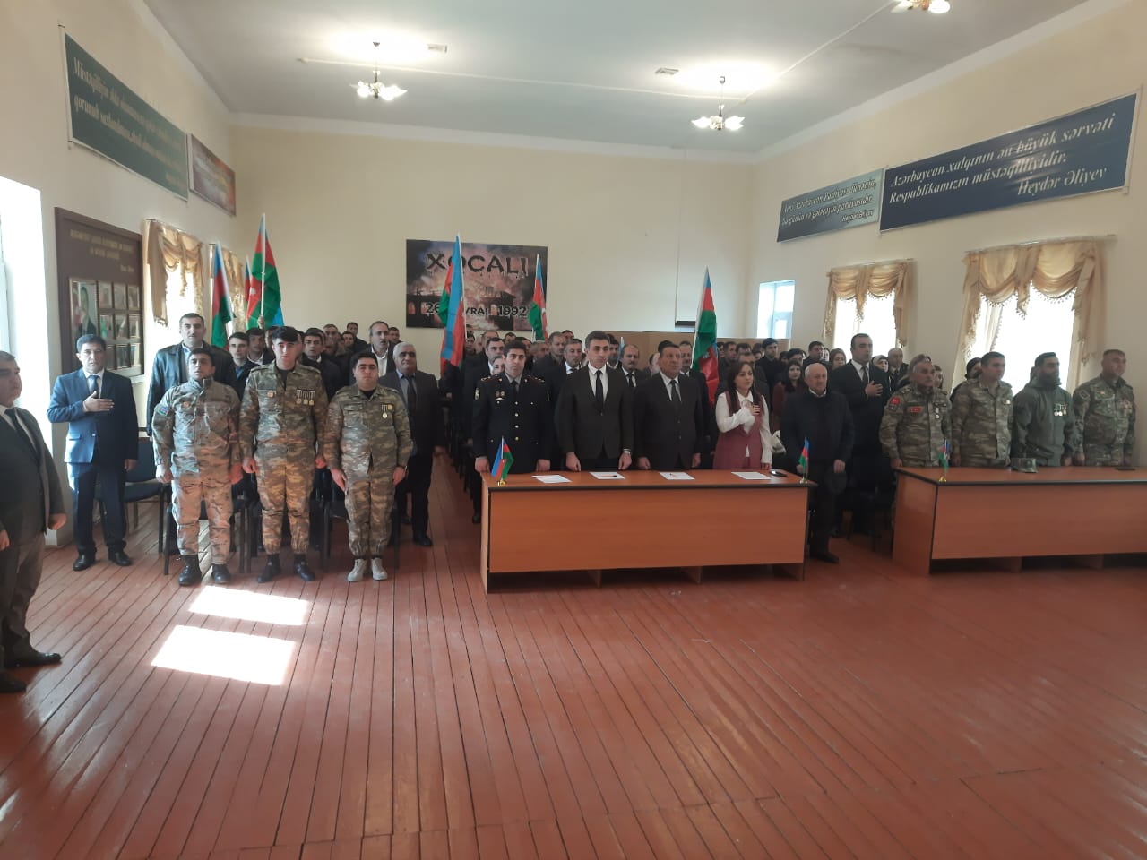 44 günlük Vətən müharibəsi şəhidi Məmmədov Elnur Xurşud oğlunun həyat yoldaşı Kəmalə Məmmədova çıxış edərək şəhidin həyatından, müharibə zamanı göstərdiyi qəhrəmanlıqdan, ailədə göstərdiyi mehribanlıqdan danışdı. O bildirdi ki, həyat yoldaşı 2016-cı ildə Aprel döyüşlərində iştirak etmiş, döyüşdə fərqləndiyinə görə fəxri fərmanla təltif olunmuşdur. O, 2020-ci ilin oktyabr ayının 26-da Murovdağ istiqamətində gedən döyüşlərdə qəhrəmancasına vuruşaraq şəhid olmuş və Gəncə Şəhidlər Xiyabanında dəfn olunmuşdur. “Vətən uğrunda” və “Kəlbəcərin azad olunmasına görə” medalları ilə təltif olnmuşdur. “Vətən müharibəsi iştirakçısı” medalı ilə təltif edilmiş veteran Vüqar Kərimov çıxış edərək cəmi 44 gün müddətində düşməni diz çökdürən Müzəffər Ordumuzun, qəhrə-man oğullarımızın hünərlərindən danışdı. O qeyd etdi ki, 30 ilə yaxın ərzində iqtisadi, siyasi və hərbi tərəfdən özünə güc toplayan dövlətimiz uğurlu əks-həmlə əməliyyatı ilə torpaqlarımızı əsarətdən azad etdi. Bu şanlı qələbənin qazanılmasında Ali Baş Komandanımızın qətiyyəti, ordumuzun gücü ilə yanaşı, əsgərlərimizə dayaq olan həmrəy xalqımızın böyük rolu vardır. Azərbaycan əsgəri məhz arxasında xalqımızın dəstəyini hiss etdikcə qürurla irəli atıldı. Yekun olaraq çıxış edən Xocalı rayon İcra Hakimiyyətinin başçısı Şahmar Usubov qalib Azərbaycan xalqını təbrik edərək bildirdi ki, biz bu günü 30 ilə yaxın gözləmişik. 2020-ci ilə qədər torpaqlarımızın işğal tarixini qeyd edirdik. İnanırdıq ki, bu tarixi gün gəlib çatacaq və Zəfər günü kimi qeyd olunacaq. Bu qələbə Azərbaycan xalqının birliyi sayəsində mümkün oldu. Xalqımızın həmrəyliyinin bu qədər güclü olmasını bəlkə də təsəvvür edə bilməzdik. Azərbaycan xalqının gücü onun Prezidentinin, Ordusunun gücüdür. Sonda tədbir Xocalı rayon mədəniyyət müəssisələrinin hazırladığı konsert proqramı ilə yekunlaşdı.