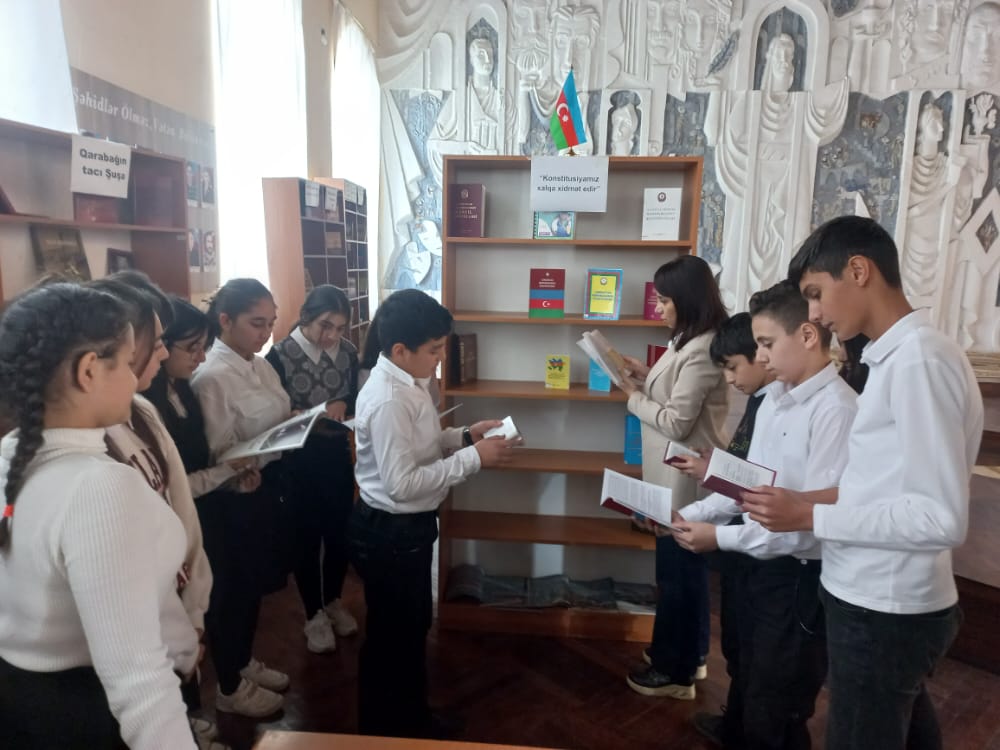 Gəncə Regional Mədəniyyət İdarəsi Gəncə şəhər Mərkəzləşdirilmiş kitabxana sisteminin 1 saylı filialı 11.XI.2022-ci il tarixində konstitusiya günü ilə əlaqədar “Konstitusiyamız xalqa xidmət edir” başlığı altında dəyirmi masa keçirdi.Tədbirdə 6 saylı məktəbin tarix müəllimi Bəyim Rüstəmova və 8-B sinif şagirdləri iştirak edirdilər.Tədbiri 1 saylı kitabxana filialının böyük kitabxanaçısı Lalə Kərimzadə açdı. Lalə tədbir iştirakçılarını salamladıqdan sonra öz çıxışında bildirdi ki, bu gün Azərbaycan Respublikasının Konstitusiyasının qəbul edilməsindən 27 il keçir. Müstəqil Azərbaycanın Konstitusiyası ulu öndəri Heydər Əliyevin rəhbərliyi ilə 1995-cil il noyabrın 12-də keçilirmiş ümumxalq səsverməsi yolu ilə qəbul edildi.1995-cil ildə qəbul olunmuş Konstitusiya müstəqil Azərbaycanın ilk,ümumilikdə isə ölkəmizin tarixində dördüncü Kostitusiyasıdır.