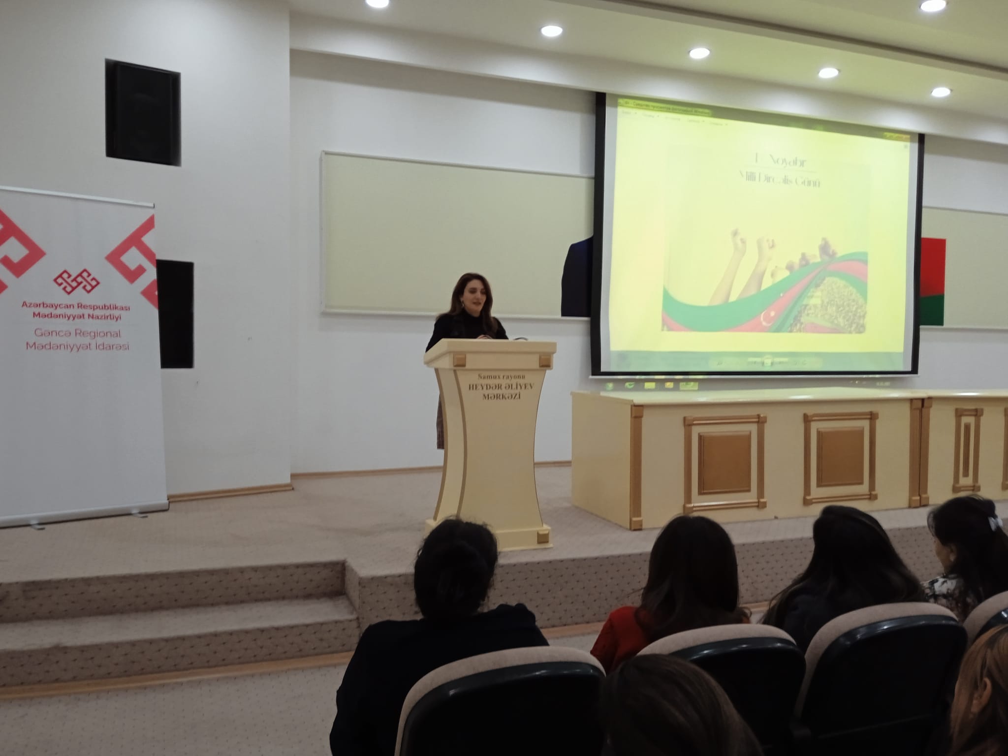 17.11.2022-ci ildə Gəncə Regional Mədəniyyət İdarəsi Samux rayon Heydər Əliyev Mərkəzində 17 noyabr Milli Dirçəliş günü ilə əlaqədar tədbir keçirildi. Tədbiri giriş sözü ilə açan Samux rayon Heydər Əliyev Mərkəzinin direktoru Nuranə Həsənova, elmi işçisi Aygül Cabbarova, əməkdaşı Gülay Namazova mövzu ətrafında tədbir iştirakçılarına geniş məlumat verdilər. Tədbirdə həmçinin Gənclərin İnkişaf və Karyera Mərkəzinin əməkdaşı Teymur Abdullayev, Samux MKS-in Ziyadlı kənd kitabxana filialının müdiri Laləzar Məmmədova mövzu ətrafında çıxışlarını davam etdirdilər. Tədbir iştirakçılarının sualları cavablandırıldı.