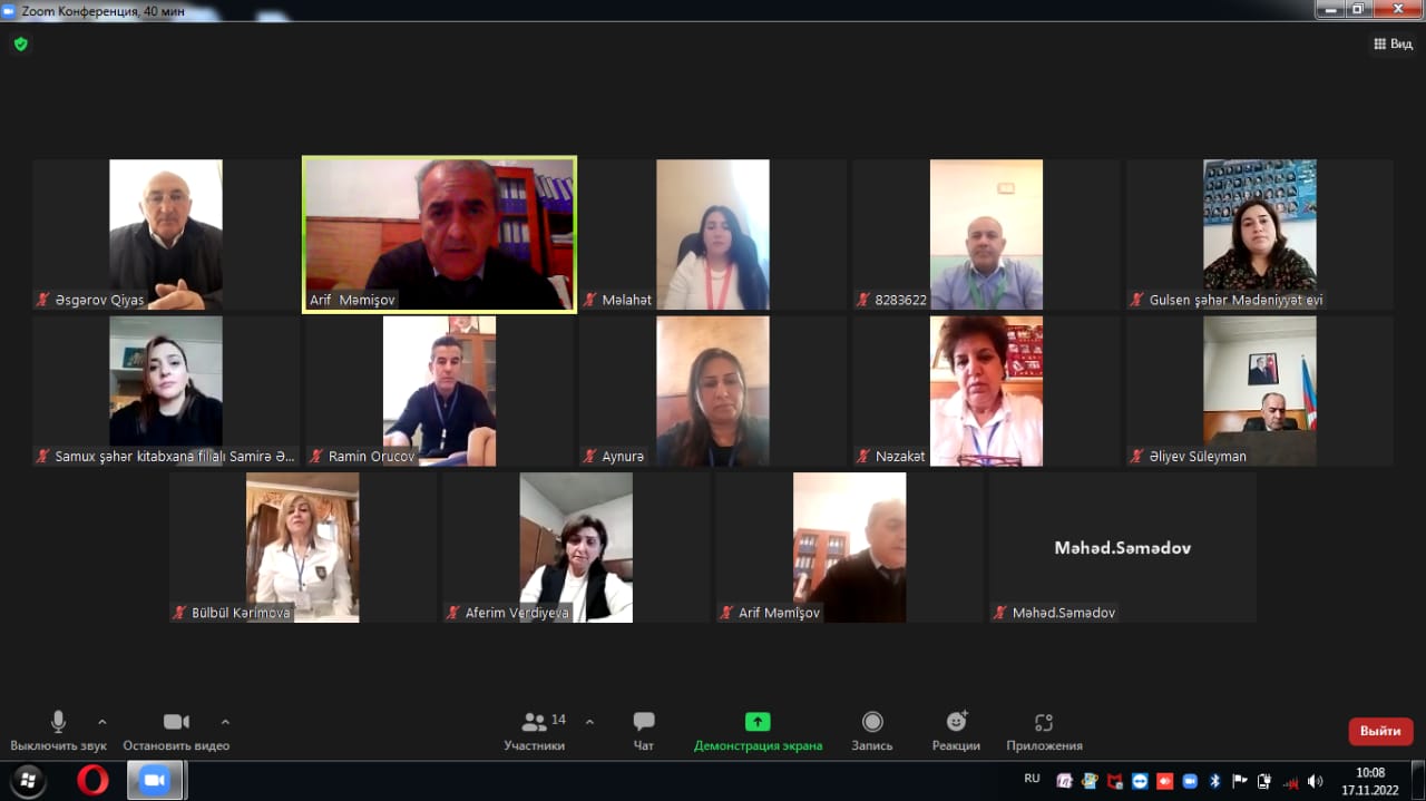 17.11.2022-ci il tarixdə Gəncə Regional Mədəniyyət İdarəsi Samux rayon Mədəniyyət Mərkəzində "17 noyabr Milli Dirçəliş günüdür"adlı onlayn videokonfrans keçirildi.