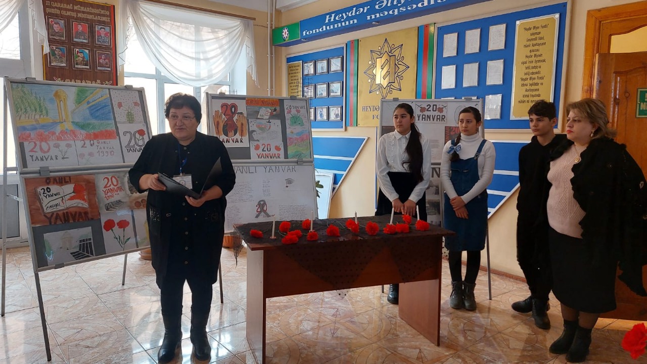 Gəncə Regional Mədəniyyət İdarəsi Gəncə şəhər Mərkəzləşdirilmiş kitabxana Sisteminin 1saylı filialı 18.01.2023-cü il tarixində Ümumxalq hüzn günü ilə əlaqədar 6 saylı orta məktəblə birlikdə “Azadlıq yolunun 20 yanvar zirvəsi” adlı ədəbi-bədii kompozisiya keçirdi. İlk növbədə 20 yanvar şəhidlərinin əziz xatirəsi bir dəqiqəlik sükutla yad edildi.1saylı filialin müdiri Məlikova Züleyxa 33 il əvvəl Azərbaycan xalqına qarşı törədilmiş dəhşətli cinayət haqqında, onun acı həqiqətlərindən danışdı. 6 saylı məktəbin direktoru Abbasova Vəfa, tarix müəllimi Aygün Həsənova 20 yanvar faciəsi ilə bağlı öz fikirlərini söylədilər. .Məktəbin şagirdləri 20 yanvara həsr edilmiş şeirlər söylədilər, ədəbi-bədii kompozisiyalar nümayiş etdirdilər, vətən haqqında mahnılar oxudular. Daha sonra tədbir iştirakçıları kitabxanamızda təşkil edilmiş “Azadlıq yolunun 20 yanvar zirvəsi” başlığı altında sərgi ilə tanış oldular. Xalqımız Vətənimizin azadlığı və ərazi bütövlüyü uğrunda şəhid olan qəhrəman övladların xatirəsini qəlbində əbədi yaşadacaq.