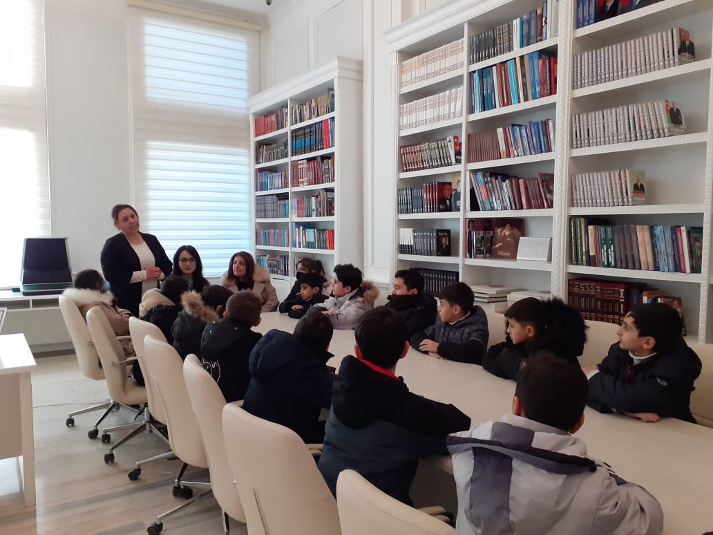 Mərkəzin bələdçisi Sevinc Bədəlova şagirlərə Ulu Öndər Heydər Əliyevin Xatirə Muzeyində nümayiş olunan eksponatlar haqqında ətraflı məlumat verib.