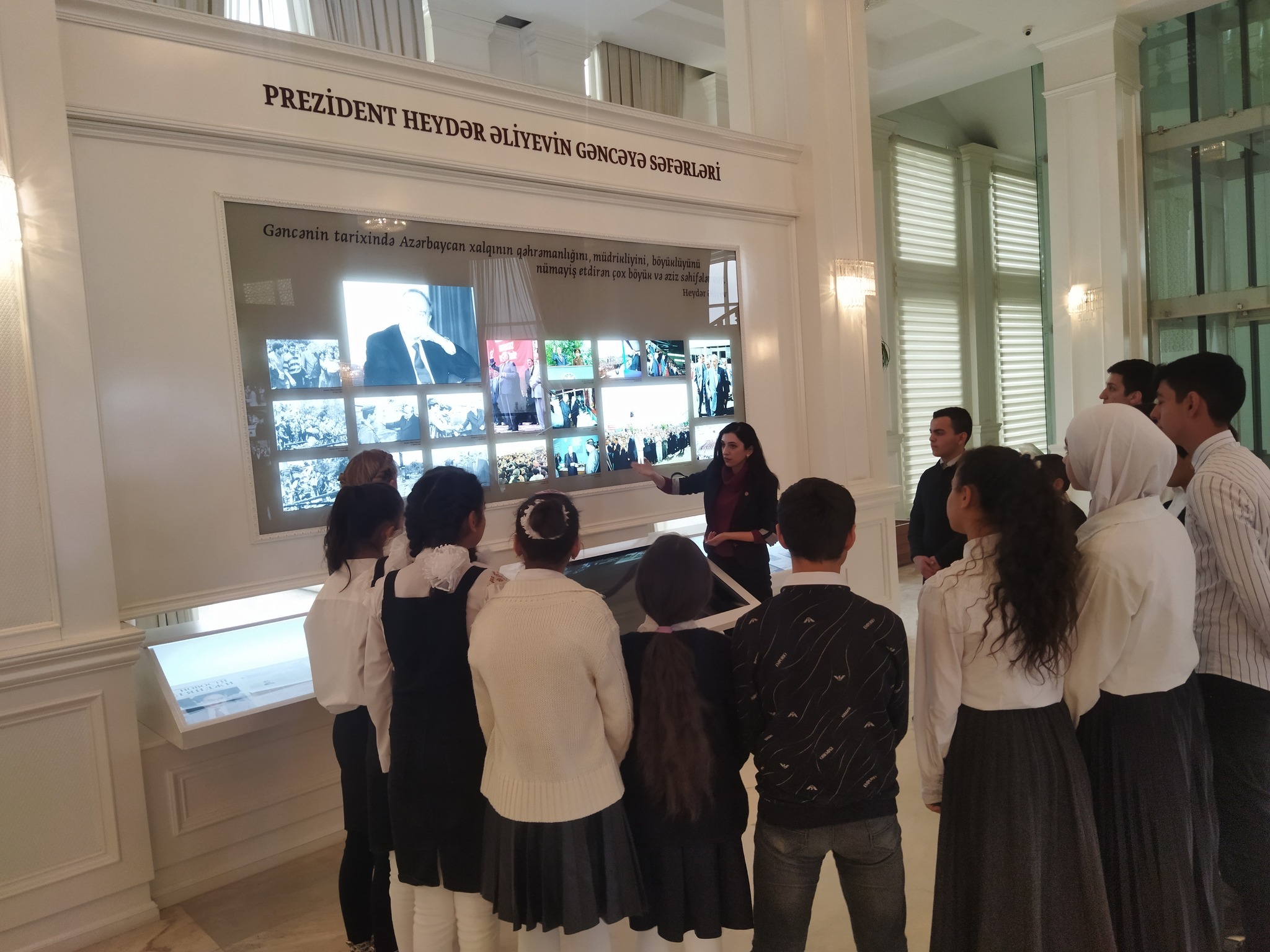 Mərkəzin bələdçisi Sevinc Bədəlova şagirlərə Ulu Öndər Heydər Əliyevin Xatirə Muzeyində nümayiş olunan eksponatlar haqqında ətraflı məlumat verib.