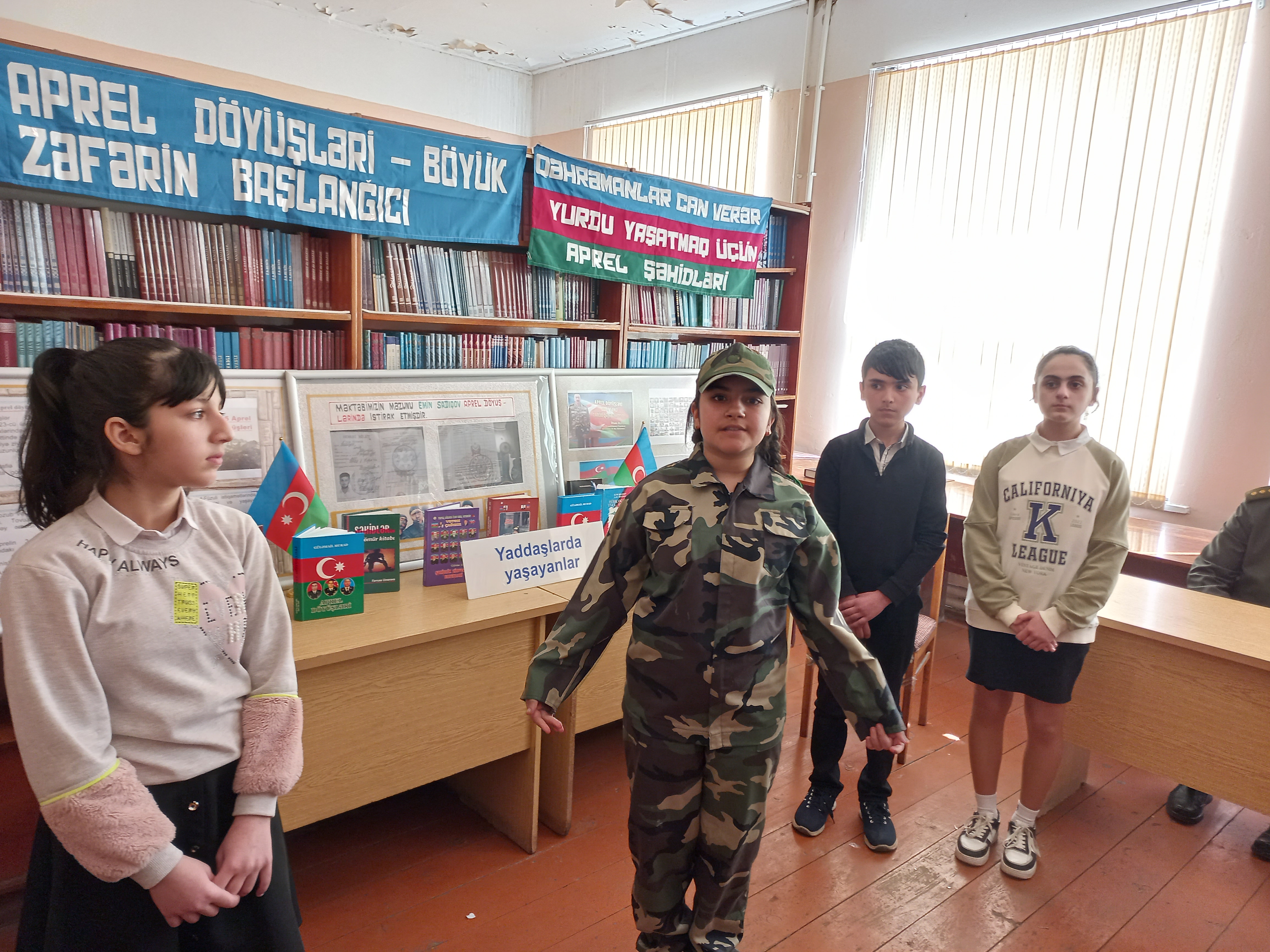 Gəncə Regional Mədəniyyət İdarəsi Gəncə şəhər MKS-nin Mərkəzi Kitabxananın Uşaq şöbəsi 04.04.2023-cü il tarixində Cəfər Cabbarlı adına 6 nömrəli məktəbdə “Aprel döyüşləri şanlı tariximizdir" başlığı altında anım günü keçirtdi. Ilk növbədə Azərbaycanın ərazi bütövlüyü uğrunda canından keçmiş bütün şəhidlərin ruhu bir dəqiqəlik sükütla yad olundu. Tədbiri girış sözü ilə açan şöbənin baş kitabxançısı Kifayət Sadıqova çıxış edərək bildirdi ki, tarixə "Dörd günlük"; müharibə adı ilə düşən 2016- cı ilin aprel döyüşlərındə şanlı Azərbaycan Ordusu işğalçı düşmənə ağır zərbələr endirərək 2 min hektardan çox ərazini azad edib və torpaqlarımıza çəkilən bütün istehkamları darmadağın etdi. Tədbirdə iştirak edən məktəbin tarix müəllimi Abdullayeva Günay və hərbi müəllimi Nəriman Sadıqov öz çıxışlarında aprel doyüşləri və şəhidləri haqqında ətraflı məlumat verərək qeyd etdilər ki, bu döyüşlər zamanı Azərbaycan ordusu öz torpaqlarını işğalçı qoşunlardan təmizləmək qüdrətinə malik olduğunu bir daha dünyaya sübut etdi. Qeyd olundu ki, aprel doyüsləri həmdə 44 günlük vətən müharibəsindəki zəfərimizin başlangıcı oldu. Tədbirdə şagirdlərin ifasında vətənpərvərlik mövzusunda şeirlər və sitatalar səsləndi. Ədəbi –bədii kompozisiya ifa olundu. Sonda məktəblilər mövzu ilə əlaqədar foto-stend və kitab sərgisi ilə tanış oldular