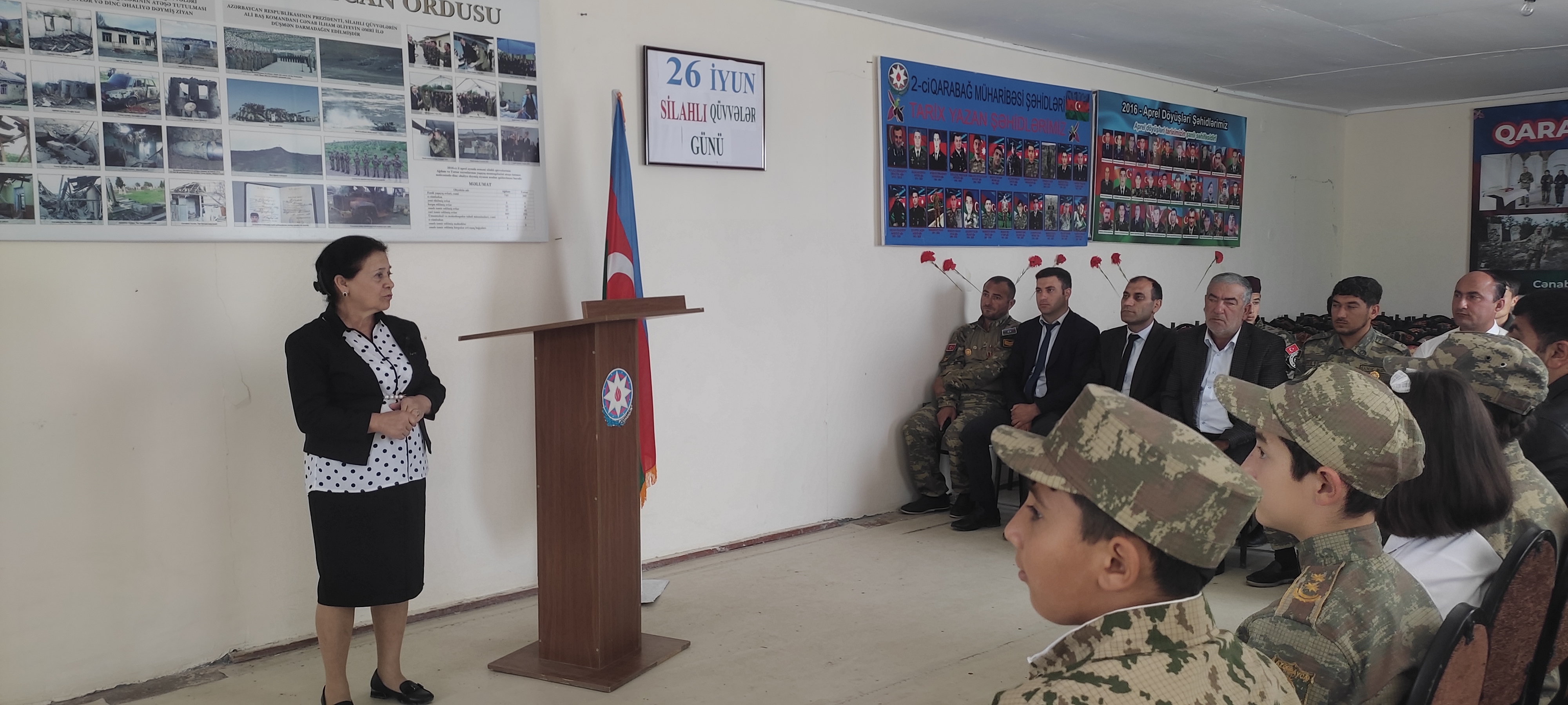 Gəncə Regional Mədəniyyət İdarəsi Goranboy rayon Mədəniyyət Mərkəzinin Qaraçinar kənd Mədəniyyət evində Şəfəq kənd Mədəniyyət evinin birgə təşkilatçılığı ilə 26-İyun Milli Silahlı Qüvvələr Gününə həsr olunmuş "Ordumuz qürurumuzdur"adlı tədbir keçirilib.