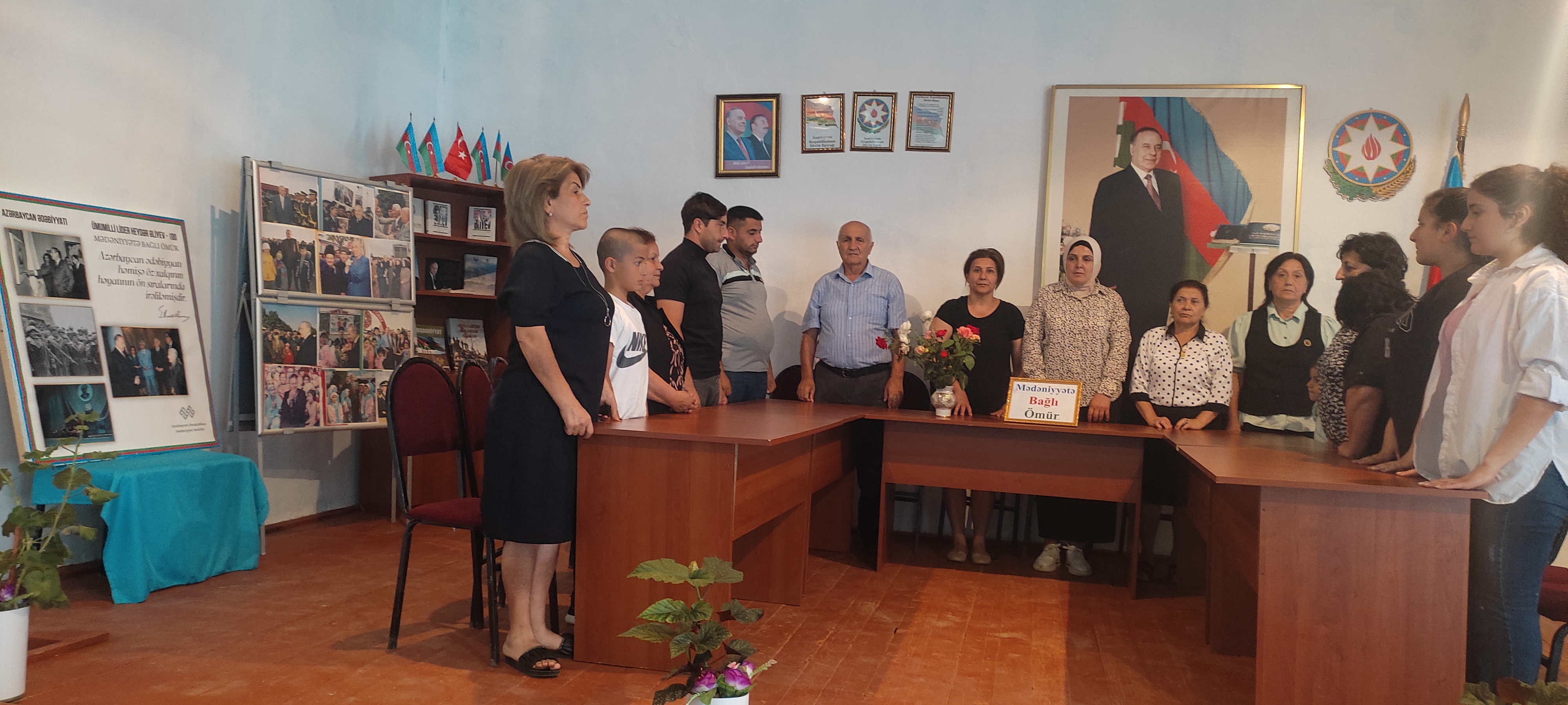 Məktəblilərin ifasında Heydər Əliyevin kəlamları səslənmiş,və Ulu öndərə həsr olunmuş foto guşəyə baxış keçirilmişdir.