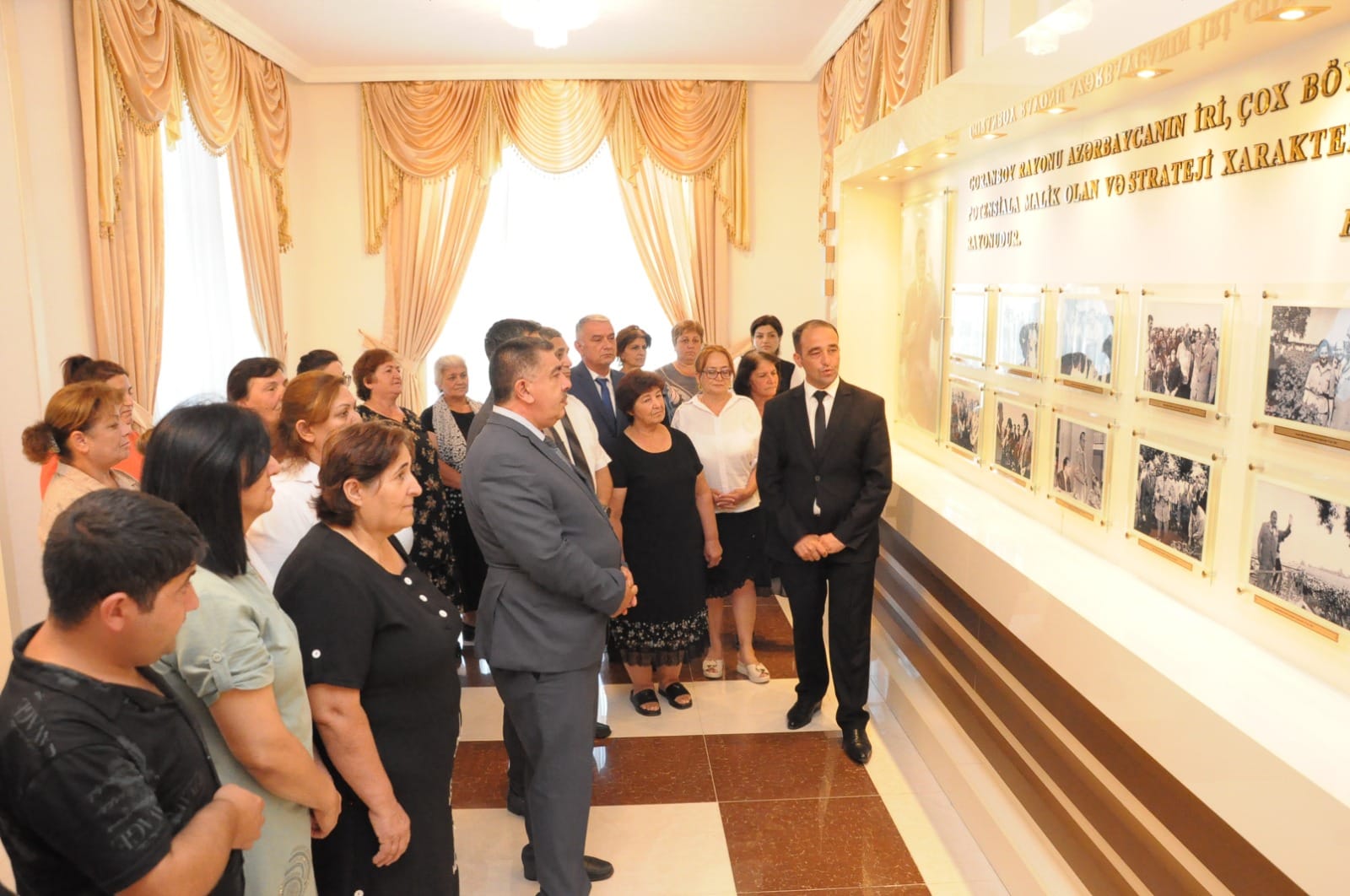 Goranboy rayon Heydər Əliyev Mərkəzində davam edən tədbirdə ilk öncə Mərkəzin foyesində Ulu Öndər Heydər Əliyevin Goranboy rayonuna olan tarixi səfərlərini əks etdirən fotoşəkillərin nümayişi olub.